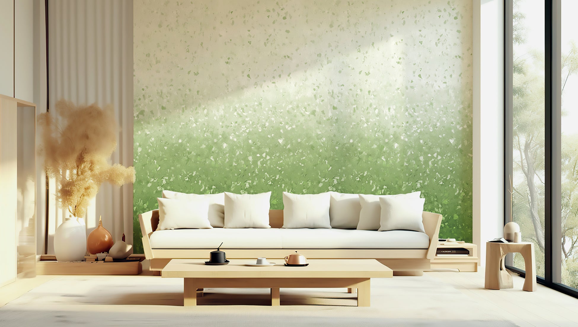 今後一層拡大するであろう日本のリフォーム・リノベーション市場や、装飾ビジュアル化が進む宿泊施設、店舗・不動産物件などにおいて、より特徴的で美しく空間を彩るデザイン性の高い壁紙に対するニーズに応えます。国内での完全受注生産によりデザインのカスタマイズにも柔軟に対応。作り手のこだわりに寄り添いながら、在庫を持たず素材のロスを抑え、環境配慮にも繋げています。さらにデジタルカタログの採用により、紙カタログの使用と仮定した場合と比べてCO2排出量の削減にも貢献*¹。室内空間におけるVOCなどの化学物質の排出に関して一定の基準をクリアした「GREENGUARD Gold認証*²」を取得したインクを使用するなど、サステナブルなビジネスモデルを展開しています。