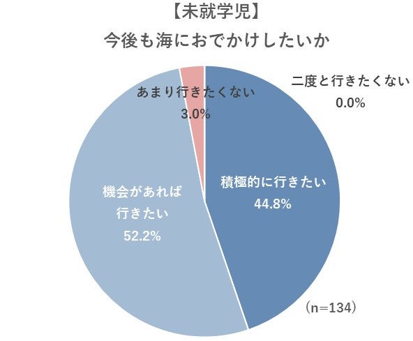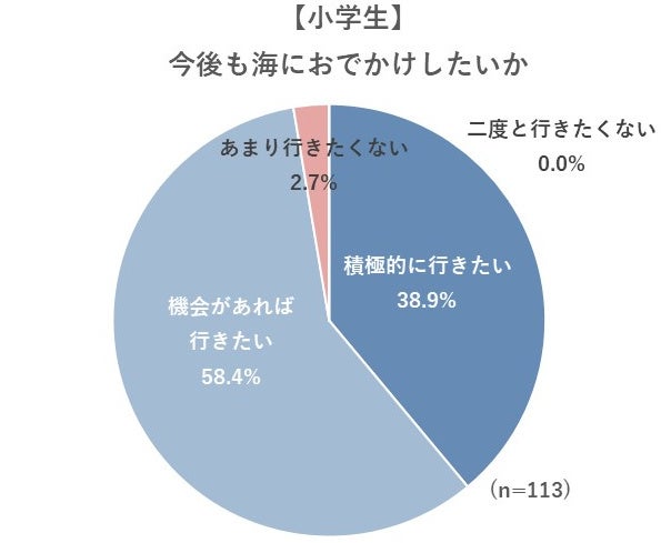 - 家族での海おでかけ経験のある大半の親が、今後も海に「積極的に行きたい」「機会があれば行きたい」と回答