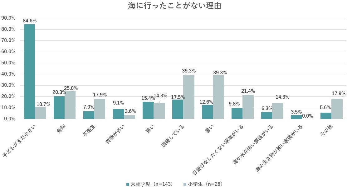 では、逆に家族で海に行った経験のない親子は、なぜ海に行かないのでしょうか。その理由について尋ねました。