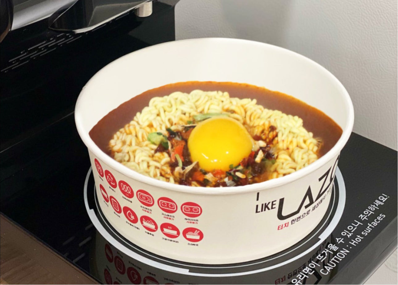 ソウルの人気スポット漢江沿いで、インスタント袋麵を専用の機械で調理して食べるラーメンの事です。