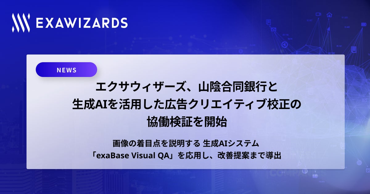 エクサウィザーズ、山陰合同銀行と 生成AIを活用した広告クリエイティブ校正の協働検証を開始