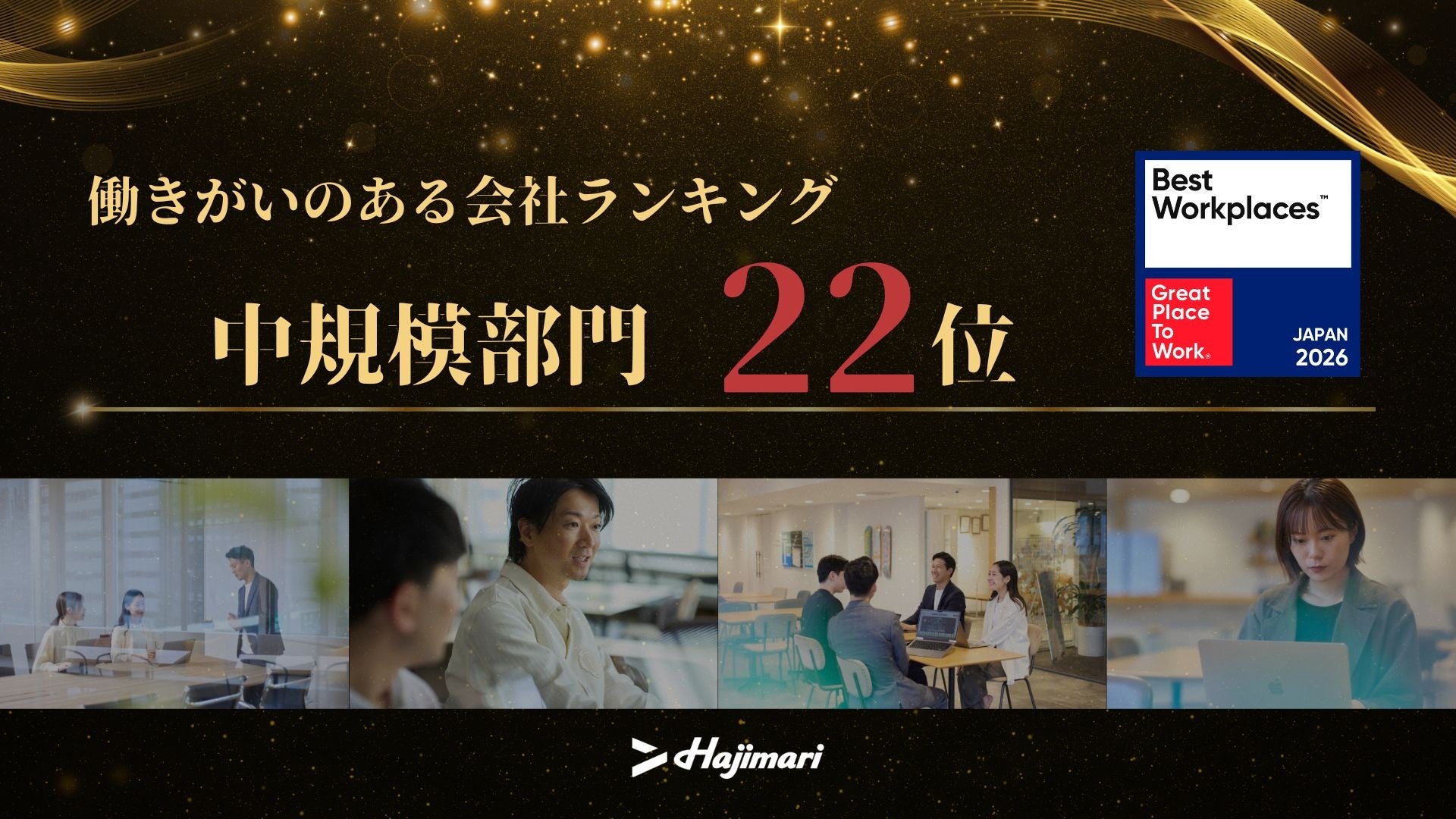 “自立創造企業” Hajimari、「働きがいのある会社」ランキング2026にて中規模部門22位を受賞。売上150億円・成長率47%の急成長を支える「Core Valuesの浸透施策」などが評価