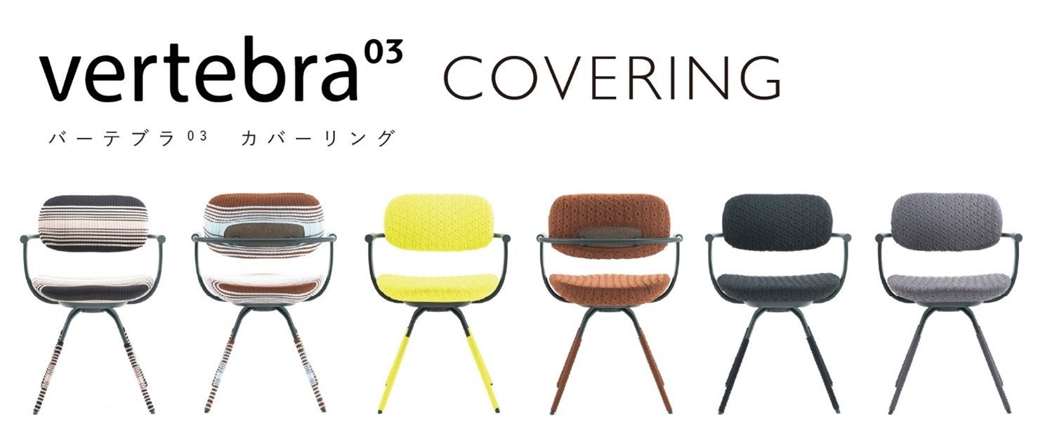 vertebra03の特徴であるカスタマイズ性をより高めるために、「背もたれカバー」「座面カバー」「スチール脚専用カバー」の3タイプに展開します。
