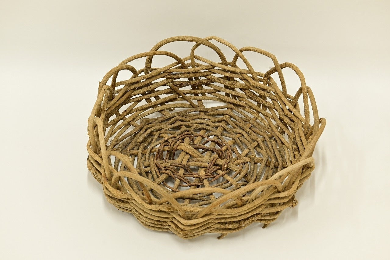 駆除が困難な雑草として厄介者扱いされるクズですが、古くは万葉集に詠まれるなど、日本人にとって身近な野草でした。根は漢方薬や葛粉(くずこ)として利用され、ツルの繊維からは葛布(くずふ)を織ることができます。本イベントは、つるカゴづくりを通して、楽しみながら活用方法を考える機会とします。