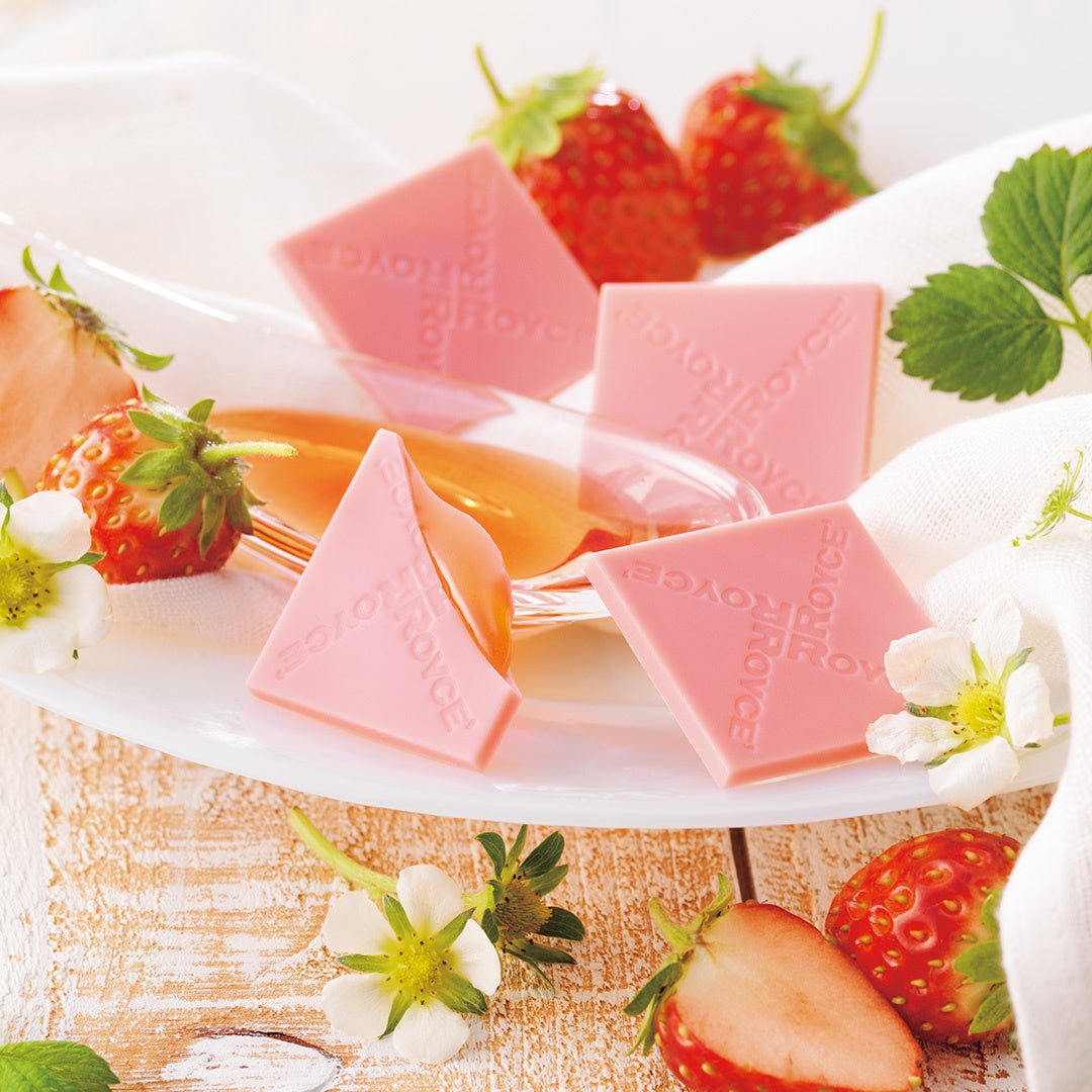いちごのパウダーを練り込んだホワイトチョコレートのセンターに、とろりとしたいちごのソースを閉じ込めました。繊細なチョコレートの中から、完熟いちごのような豊かな甘さのソースが広がります。