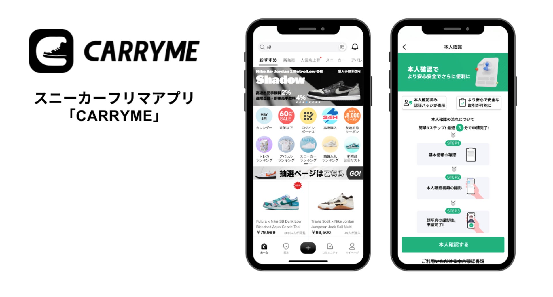 スニーカーフリマアプリ「CARRYME」が、eKYC本人確認サービス「TRUSTDOCK」を導入