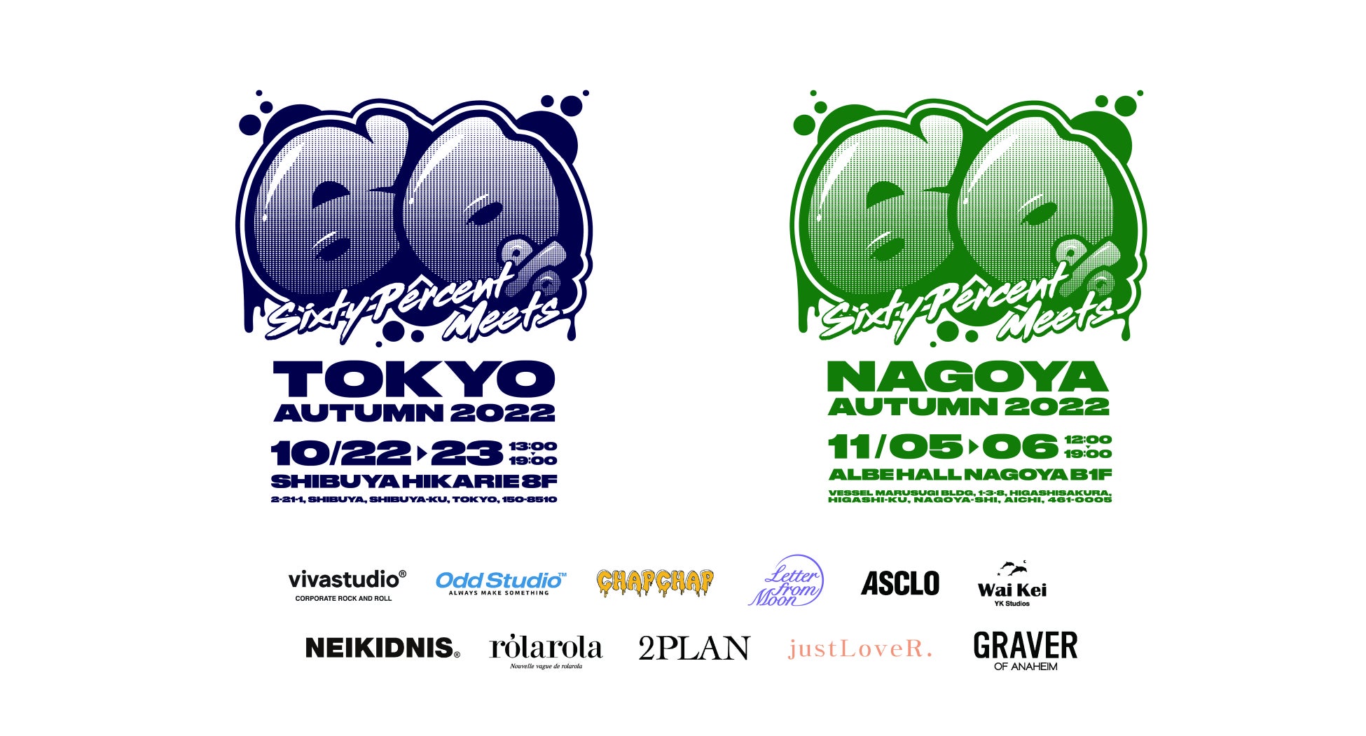 韓国・アジア各国で話題のブランドが750以上集まるオンラインセレクトストア「60%(シックスティーパーセント)」が、東京会場 10月22日(土)・10月23日(日)、名古屋会場 11月5日(土)・11月6日(日)でポップアップイベント「60% meets TOKYO/NAGOYA AUTUMN 2022」を開催することが決定。出店する人気11ブランドのうち、4ブランドは会場限定のスペシャル特典もご用意。