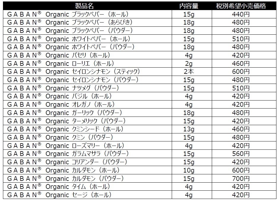 料理のプロも認めるGABAN®ブランドに、初のオーガニック製品が登場!「GABAN® Organic」シリーズ