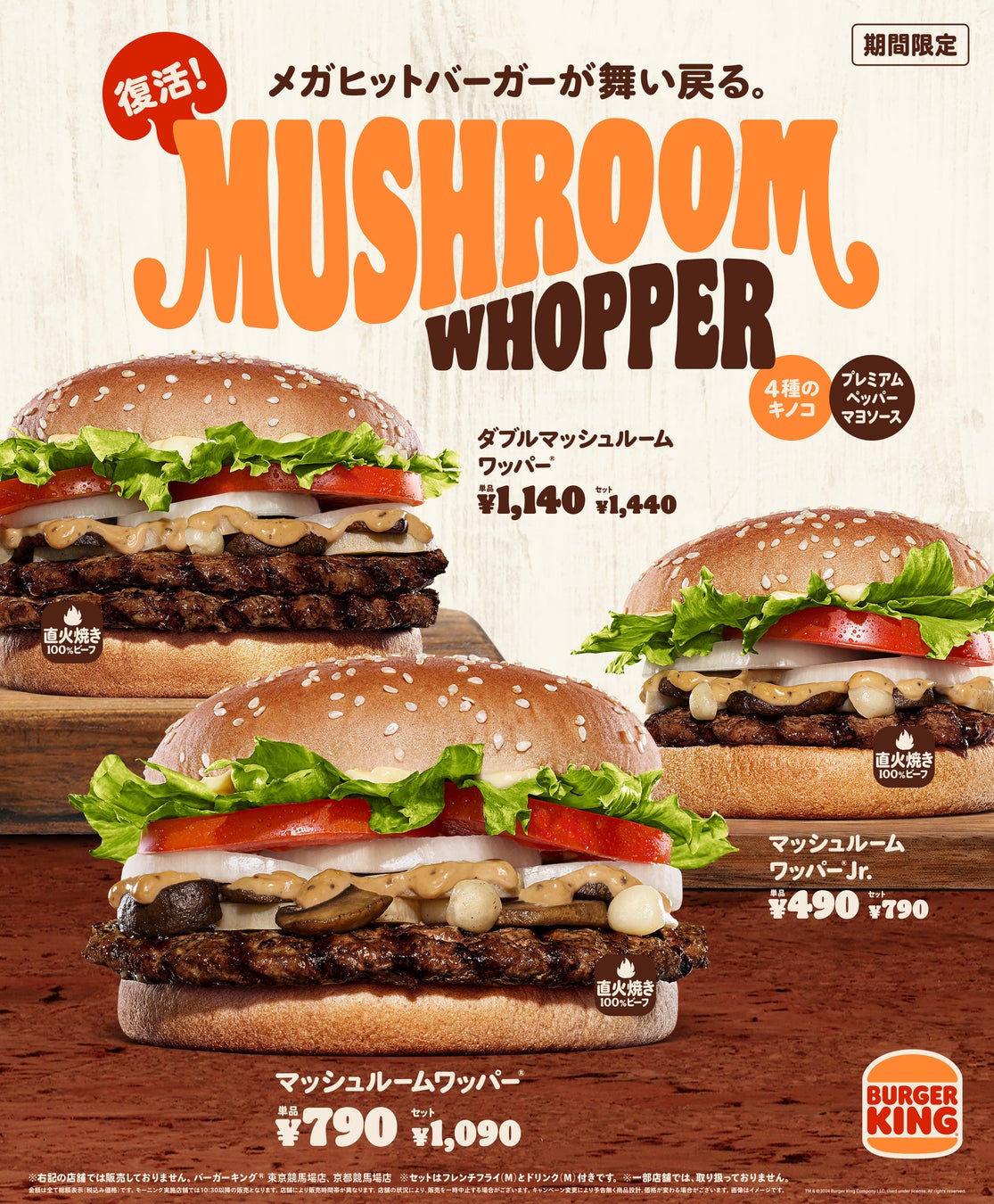 バーガーキング® 秋の風物詩バーガーが今年も復活!4種のきのこを贅沢に使用した『マッシュルームワッパー® 』発売!焦がし醬油香るクリーミーなペッパーマヨソースと直火焼きの100%ビーフパティが相性抜群