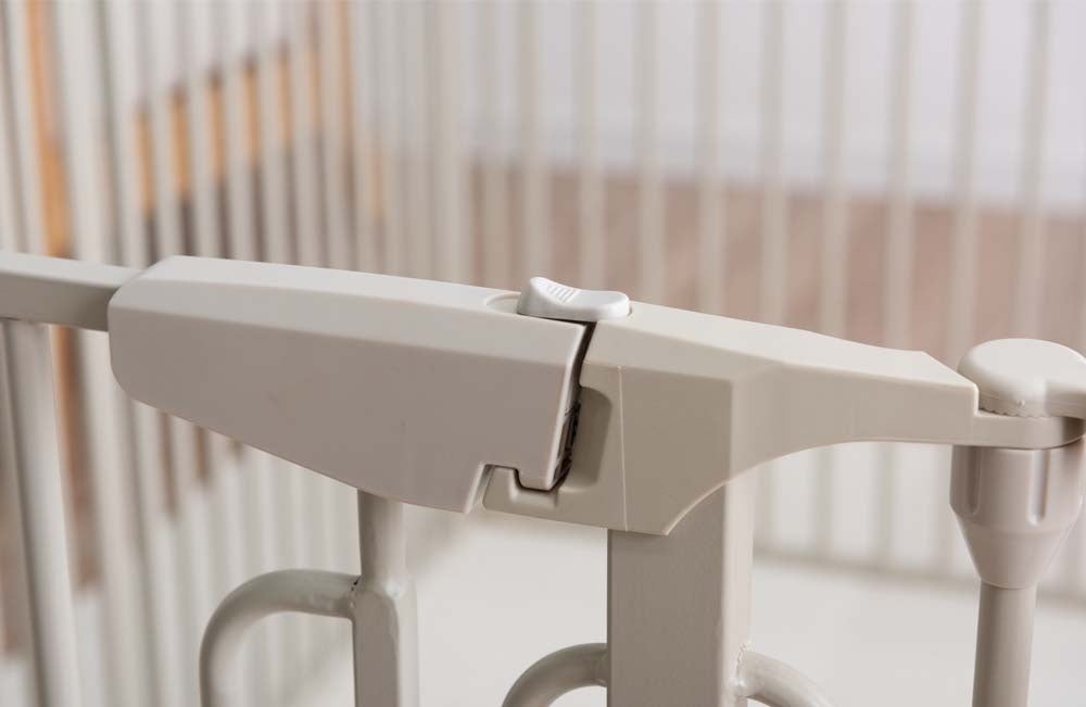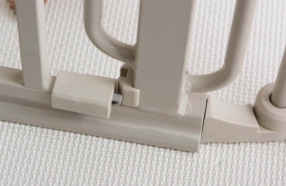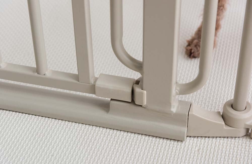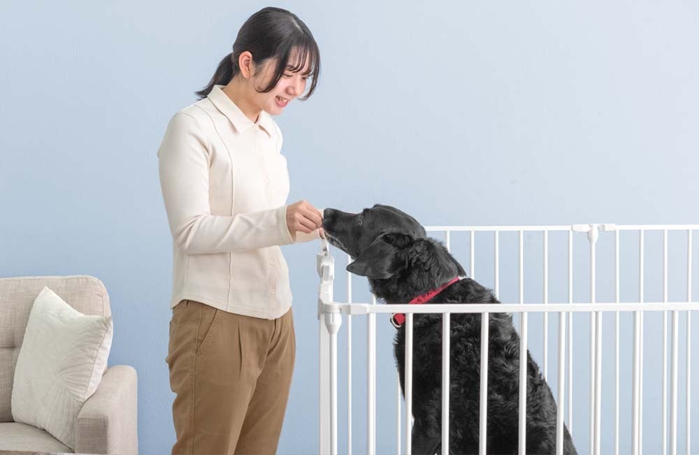本製品は、小型犬やパピー期の活発なワンちゃんの行動を考慮して設計されています。噛んだり引っ掻いたりしても壊れにくく、長くご使用いただけるよう、耐久性に優れたスチール製のフレームを採用しています。さらに、脱走防止だけでなく、日常的に安心してご使用いただけるよう、角やバリのない丁寧な仕上げにもこだわり、ワンちゃんのケガを防ぐことができるように工夫しています。
