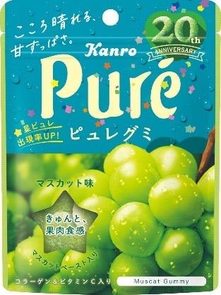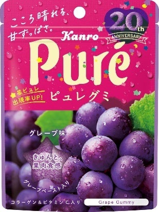 『ピュレグミ』は、2002年の発売以来、幅広い世代の方からご支持いただいているカンロの人気商品です。フルーツのおいしさを引き出す“すっぱいパウダー”と独自の“果肉食感”により、噛むほどにフルーティーな甘ずっぱいおいしさが広がり、食べた瞬間こころが晴れるように、ちょっとハート(気持ち)があがるハート型のグミです。ピュレグミは今年で20周年。「ときめく風に、乗れ。」というメッセージを通じて、みなさまのときめく気持ちを応援していきます。