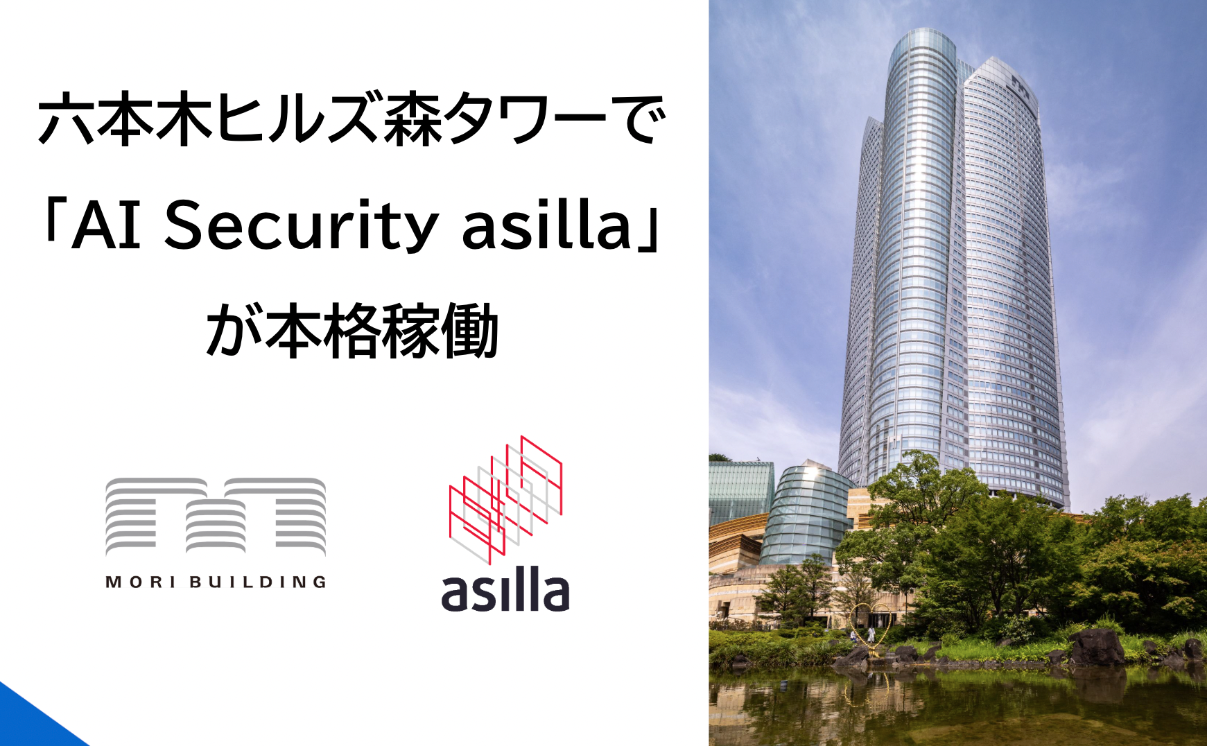 株式会社アジラ(本社:東京都町田市、代表取締役 CEO 兼 COO 尾上剛、以下「アジラ」)は、森ビル株式会社(本社:東京都港区六本木6丁目10番1号 代表取締役社長 辻󠄀慎吾、以下「森ビル」)が運営する六本木ヒルズ森タワーにて、施設向けAI警備システム「AI Security asilla(以下、asilla)」が本格稼働したことをお知らせいたします。