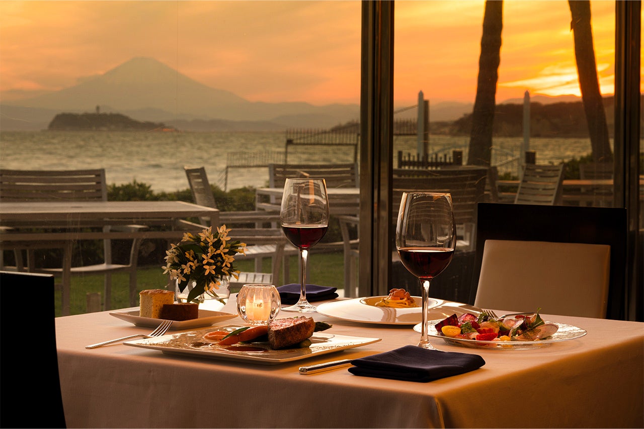 ディナーとともに、オーシャンビューの店内から「ダイヤモンド富士」をご鑑賞いただけます。
