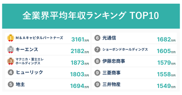 3位はマクニカ、2位はキーエンス。1位はあの企業!全業界平均年収ランキングTOP10を発表!/SalesNow DBレポート