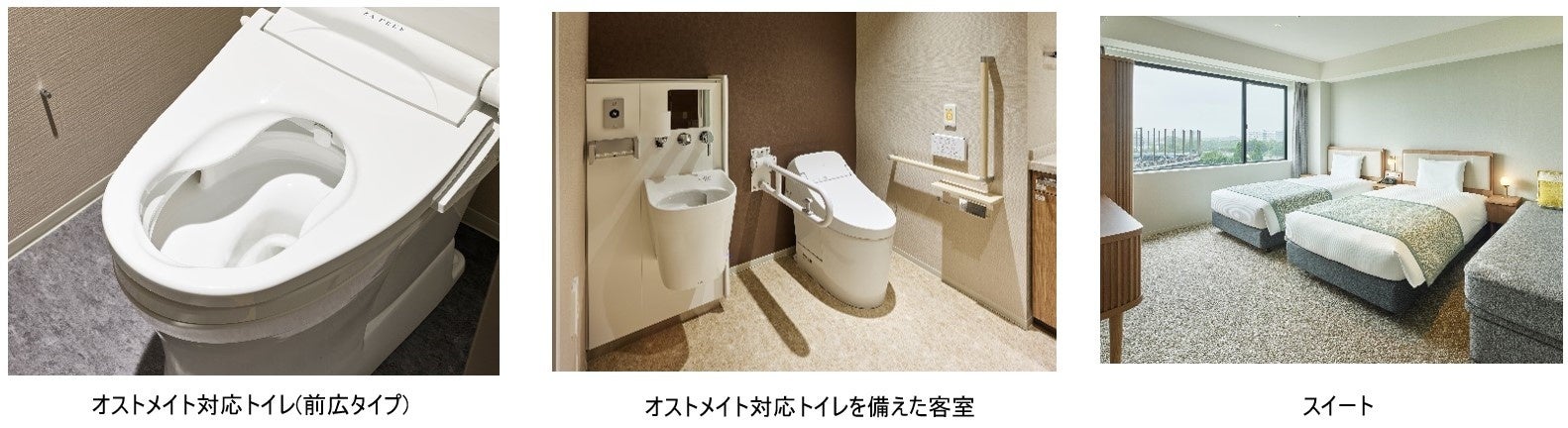 - オストメイト対応のシンク・シャワー付のトイレや前広便座を採用したトイレなどを設置した客室