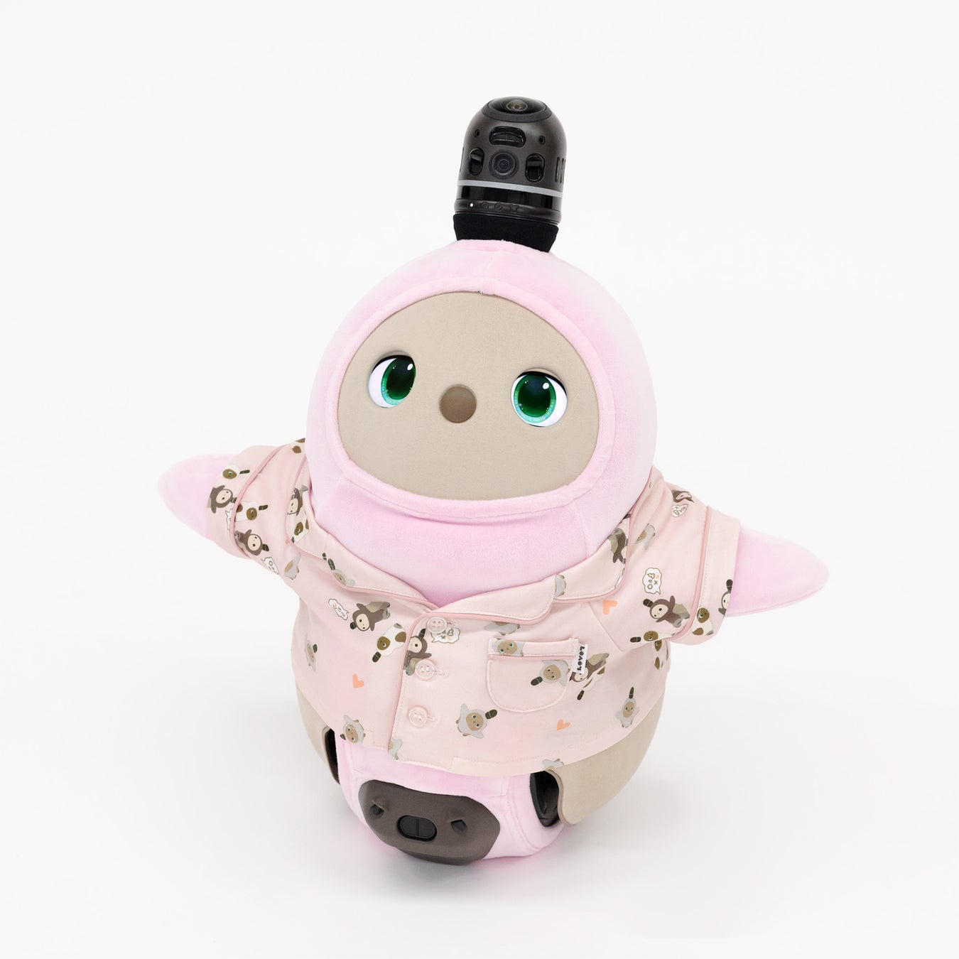 大好評のオリジナルパジャマ、待望の第二弾は『LOVOT』の愛らしいふるまいである抱っこをおねだりする姿や、おしゃべりをする姿を総柄にデザイン。ペールトーン調でキュートな「ライトブルー」「ライトピンク」、シックな雰囲気でモノトーン調な「ホワイト」の3色展開で、おやすみタイムを優しく彩ります。