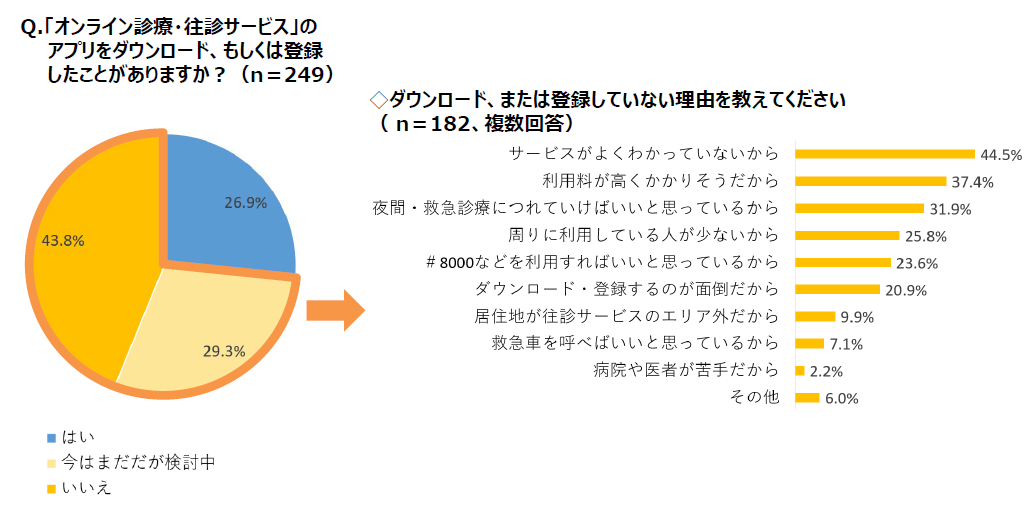 コロナ禍を経て台頭してきた「オンライン診療・往診」サービス。事前にダウンロード・登録をして利用する、という新しいサービスなだけに、普及のカギは、内容や費用を含めた詳細なサービスのより丁寧な説明ではないでしょうか。夜間・救急診療や救急車の利用のほか、第2、第3の「いざというときのヘルプ」となるよう、理解が深まっていくことが重要といえそうです。
