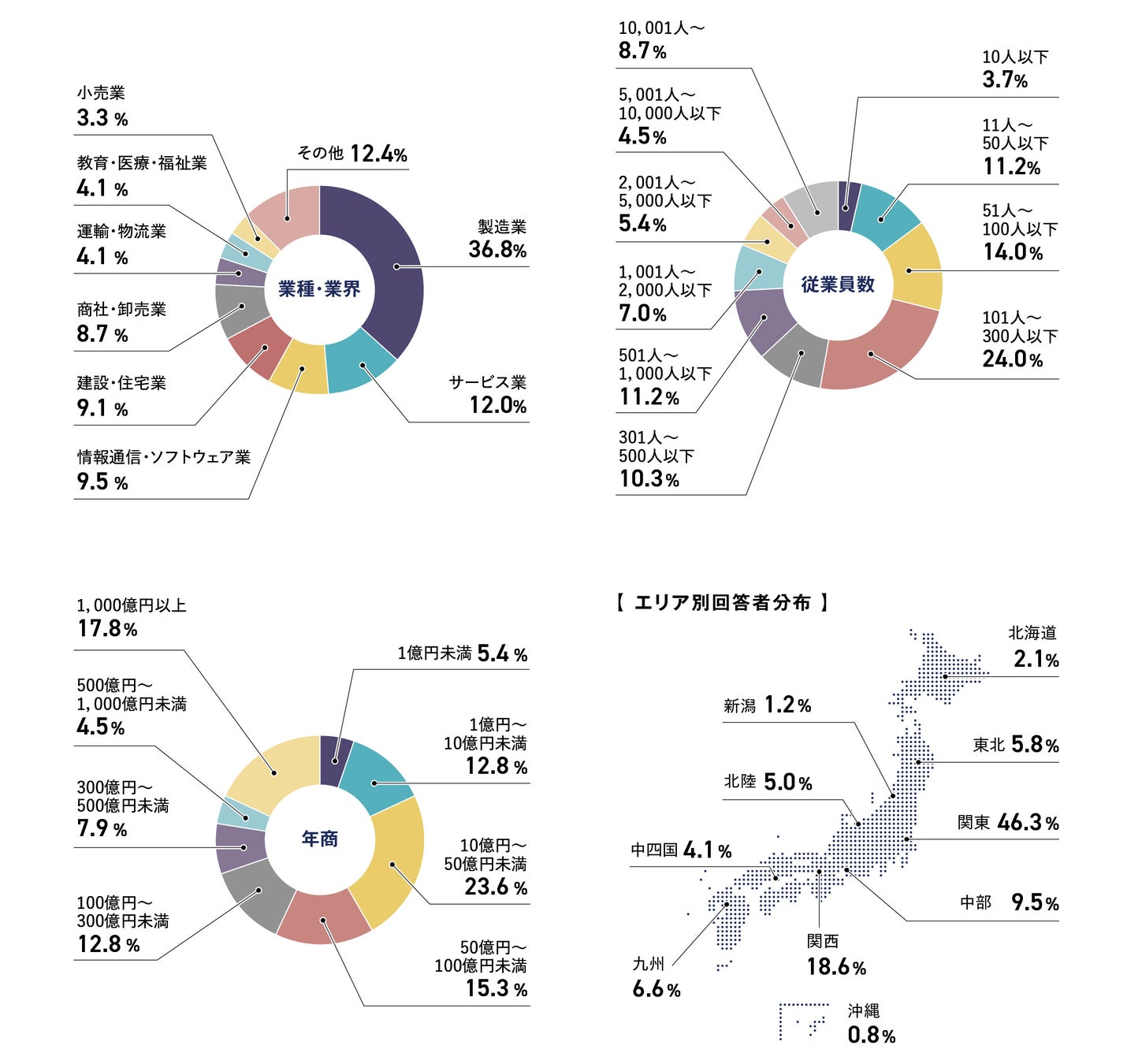 ※本調査では、アンケートにご回答いただいた企業において、従業員規模が300人超~2000人以下の企業を中堅企業、300人以下の企業を中小企業として分類・分析を行いました。