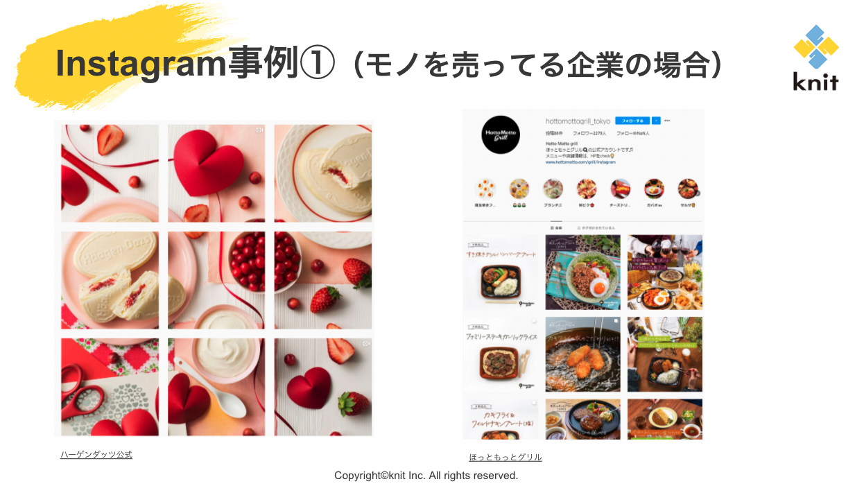 画像で視覚的に商品の魅力などを伝えられる。アイデア次第で独自性を出すことも可能。10〜20代の約7割が利用している。拡散力は高くないため、他のSNSプラットフォームと併用するのがおすすめ。