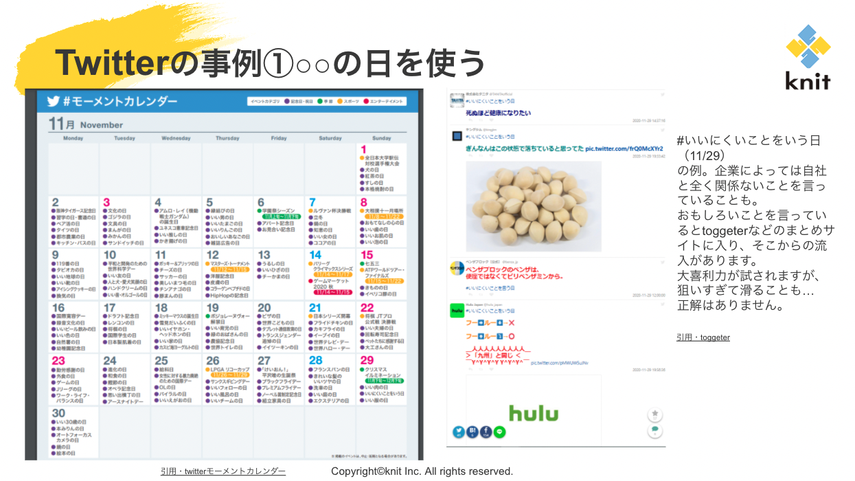 有名、あるいは面白い「◯◯の日(例:いいにくいことをいう日)」はトレンドに入りやすいので事前にチェックして投稿文面を作成しておくのがおすすめ。炎上リスクの高い話題は避けると良い。