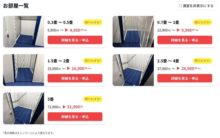 荷物以上に大きな部屋を借りてしまうことや、狭すぎて荷物が入らなかったなんていうトラブルを回避できます。