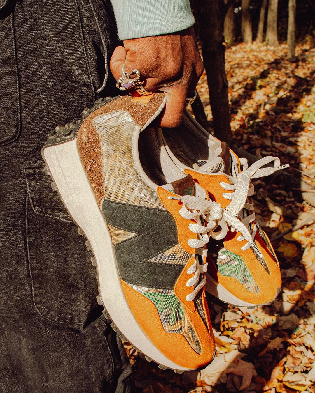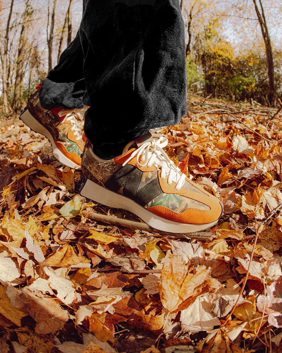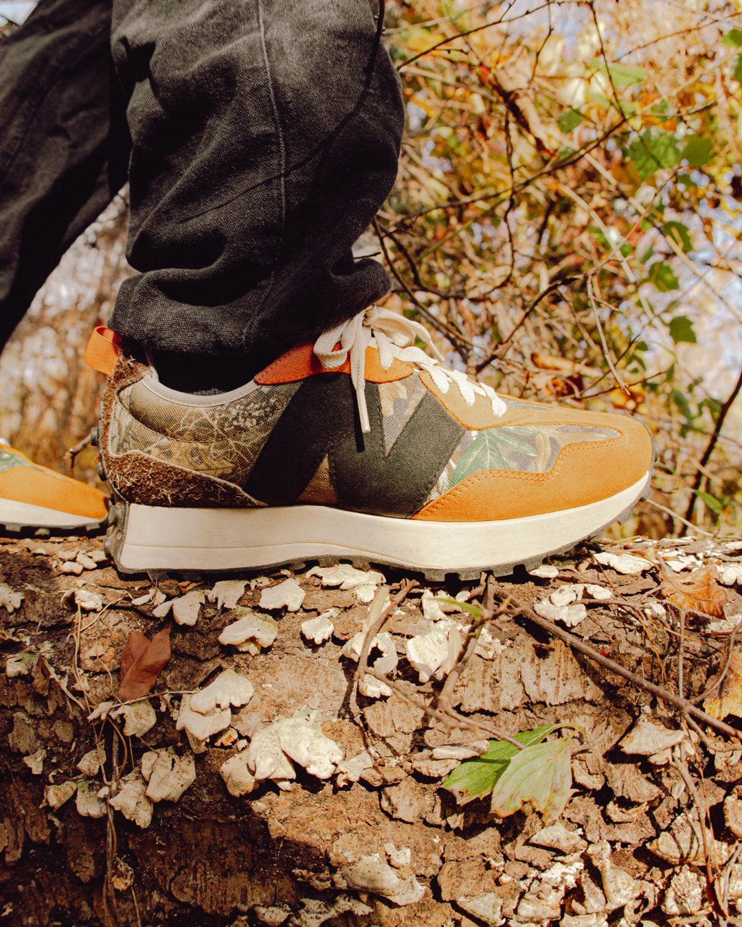 atmosより⼤⾃然に着⽬し、Realtree CAMOを使⽤した『NEW BALANCE × atmos MS327ART“Realtree CAMO”』が登場。