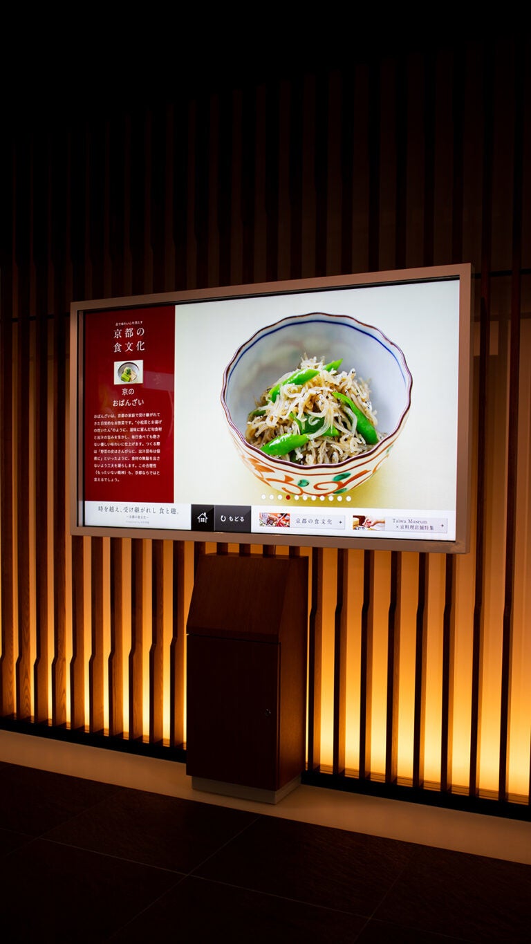 今回、京都の歴史ある食文化、水や和菓子の歴史などを伝える施設に、withコロナ時代に対応した非接触型のデジタルインフォメーションウォールを導入しました。
