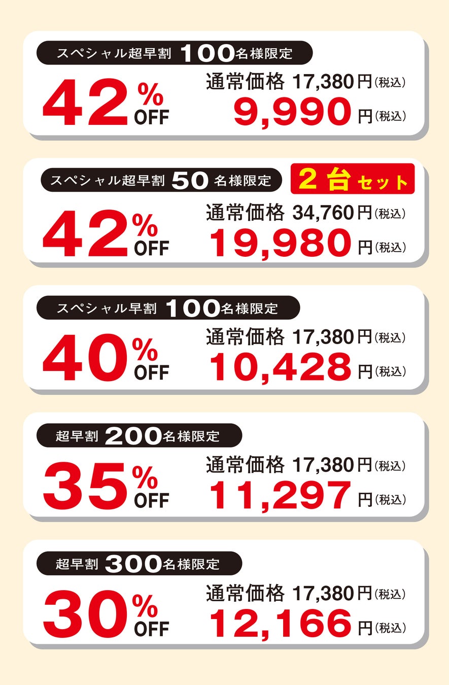 1番おトクな「スペシャル超早割」は、通常価格からなんと最大42%OFF!