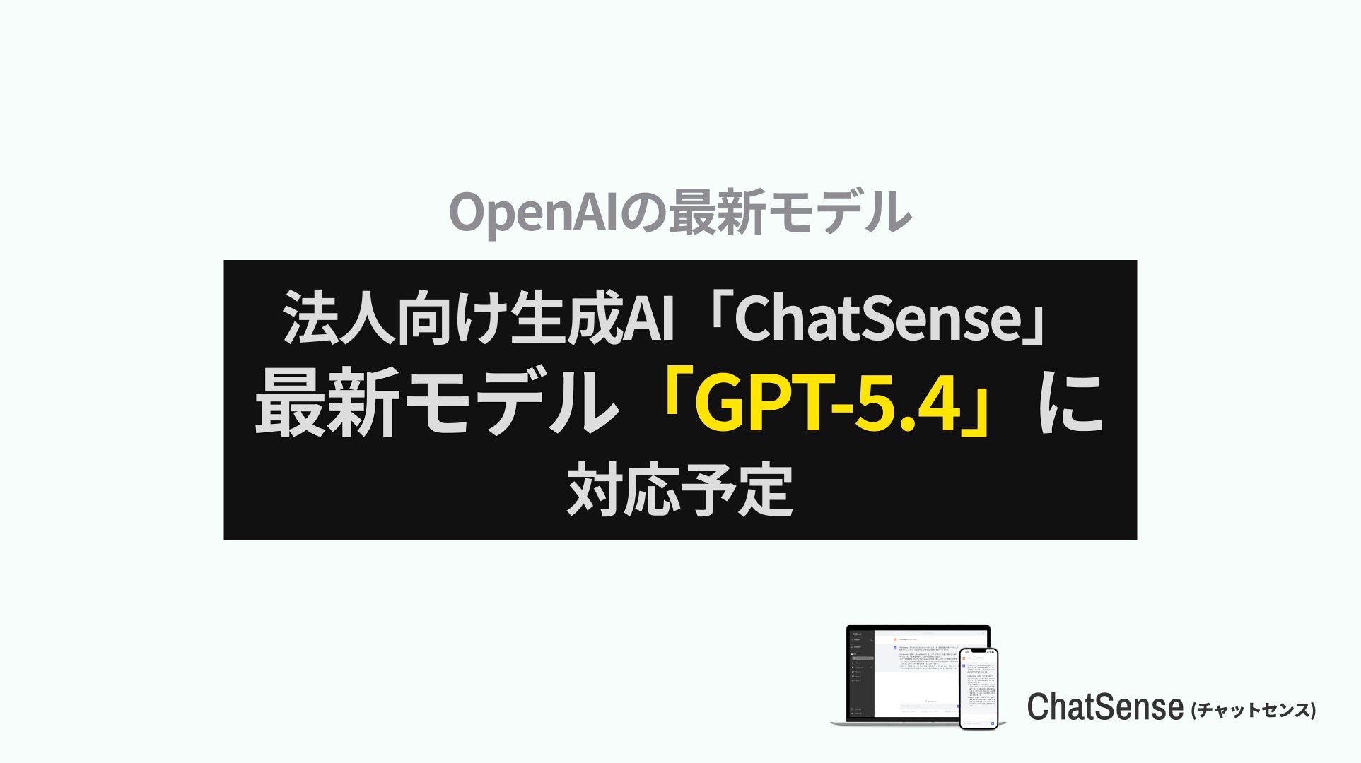 株式会社ナレッジセンス(本社:東京都港区、代表取締役:門脇敦司)は、法人向けAIエージェントサービス「ChatSense」において、利用可能なOpenAIモデルをGPT-5.2からGPT-5.4へアップグレードすることを発表します。アップグレードは、今週中に実施される予定です。ユーザーへの料金変更はなく、引き続き現行プランのままGPT-5.4をご利用いただけます。ご質問等はお問い合わせフォームよりご連絡ください。
