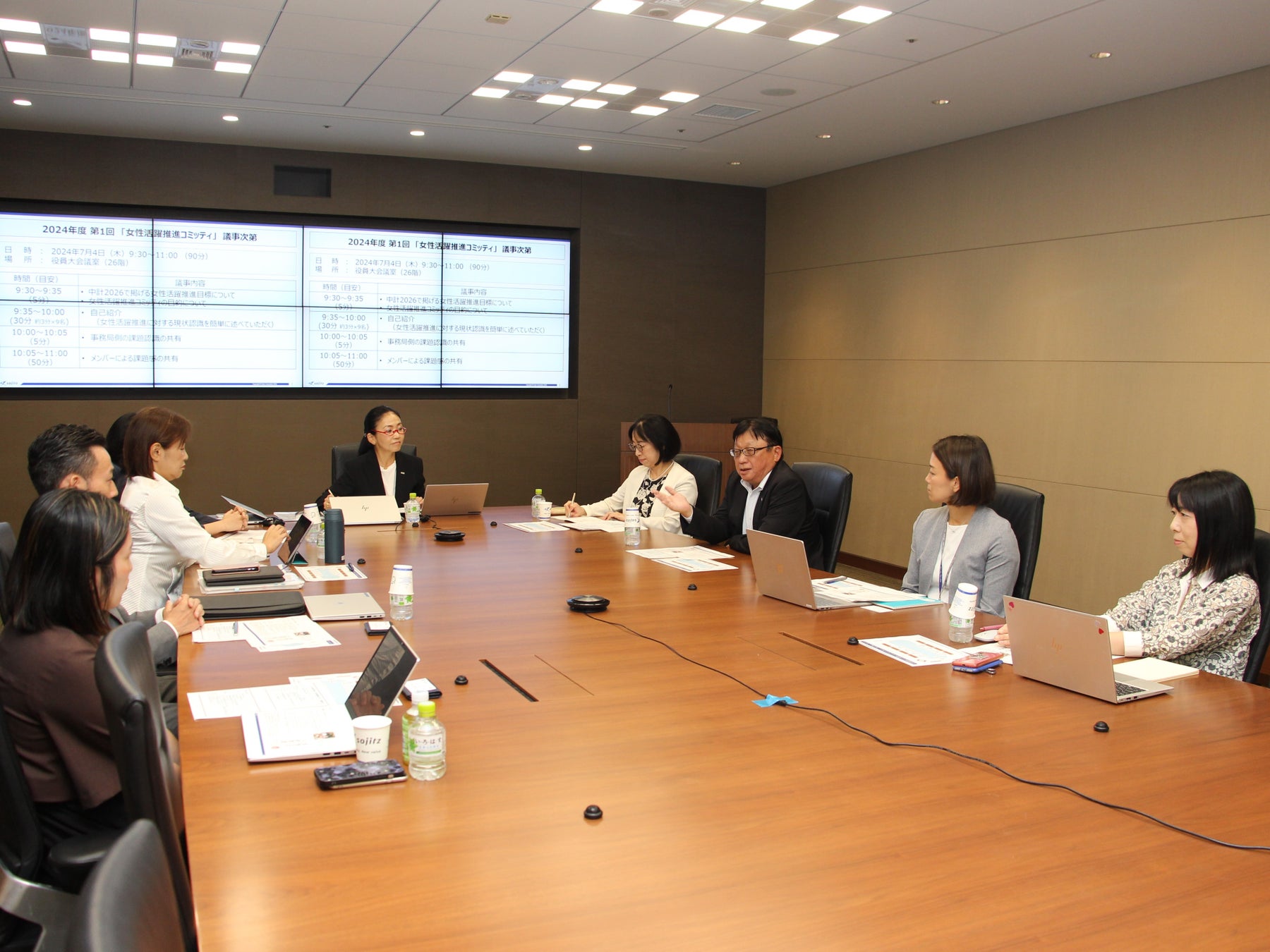 2024年度の新たな取り組みとしては、6月に総合商社初(※1)の女性社内取締役を選任しました。女性取締役比率は36%、執行役員を含む女性役員比率は18%です。7月には、人材パイプライン強化のための施策立案と実行に取り組む「女性活躍推進コミッティ」を創設しました。役員、管理職、社員、有識者など異なる立場のメンバーが年6回の会議を通じて、「ワークとライフの両立の難しさ」などの女性活躍を巡る課題や施策を多角的に議論し、取締役会や経営会議への報告を行い、女性社員の挑戦やキャリア形成の支援に取り組んでいます。