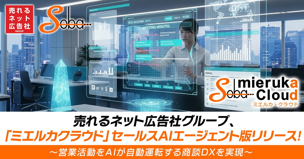 売れるネット広告社グループ株式会社(本社:福岡県福岡市、代表取締役社長 CEO:加藤公一レオ、東証グロース市場:証券コード9235、以下 売れるネット広告社グループ)は、連結子会社である株式会社SOBAプロジェクトが開発・運営する純国産Web会議システム『ミエルカクラウド』において、『ミエルカクラウド~セールスAIエージェント版~』を正式リリースいたしました。