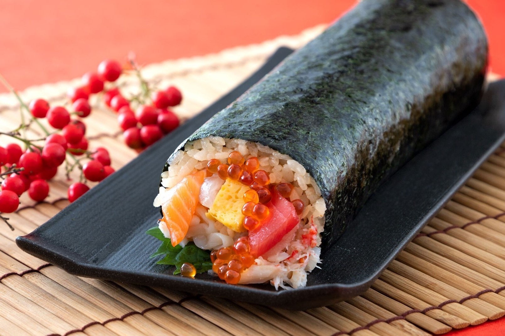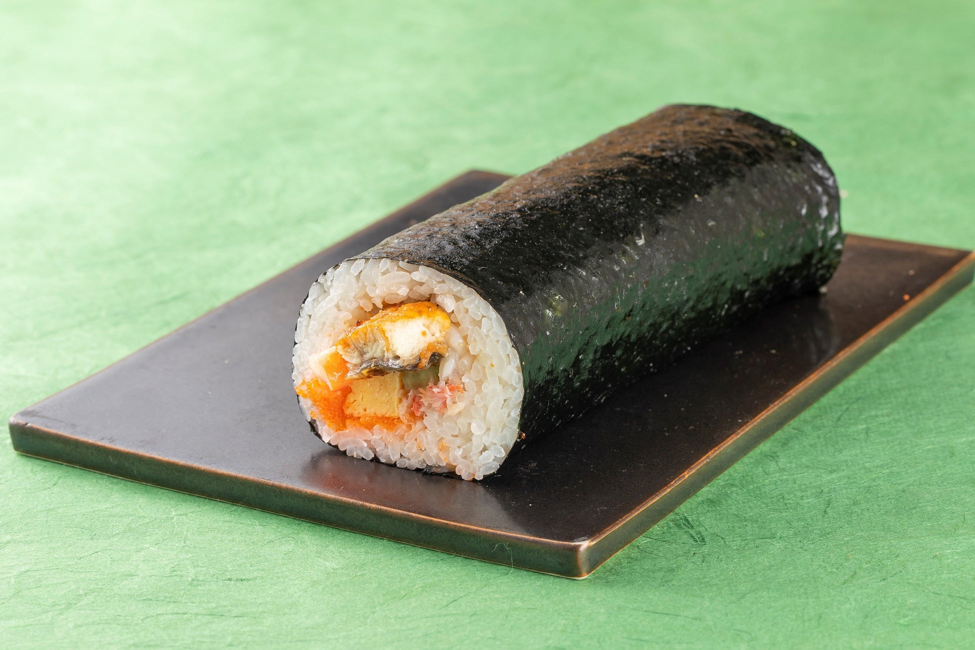 すし屋の板前が巻く、海鮮恵方巻。うなぎ、カニ、サーモン、海老、いくらなど9種類の具材が入った恵方巻です。