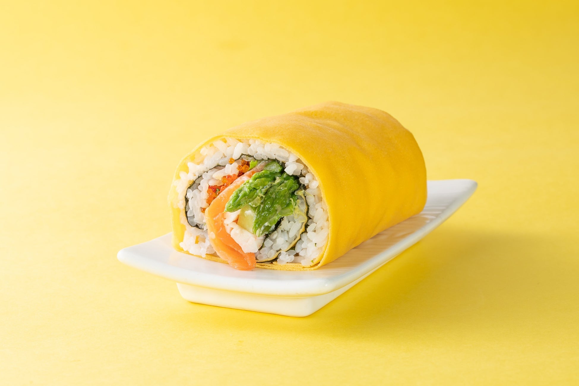 海老、アボカド、クリームチーズを甘みのあるふんわり玉子で包んだ口当たりの良い恵方巻です。レタスやグリーンリーフの葉物野菜と人参ナムルの食感がアクセント。野菜も楽しみたい方にオススメの軽やかな味わいのサラダ恵方巻です。