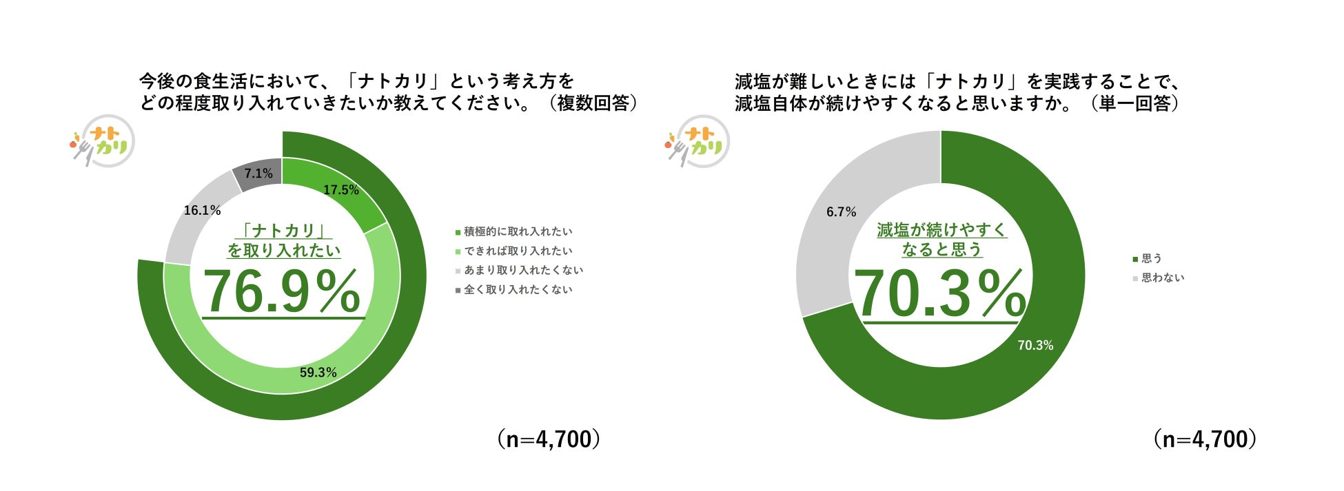 減塩“苦戦層”に朗報?!「ナトカリ」を今後、食生活に取り入れたい人は約77%。理由は「手軽に実践できる」がトップ。