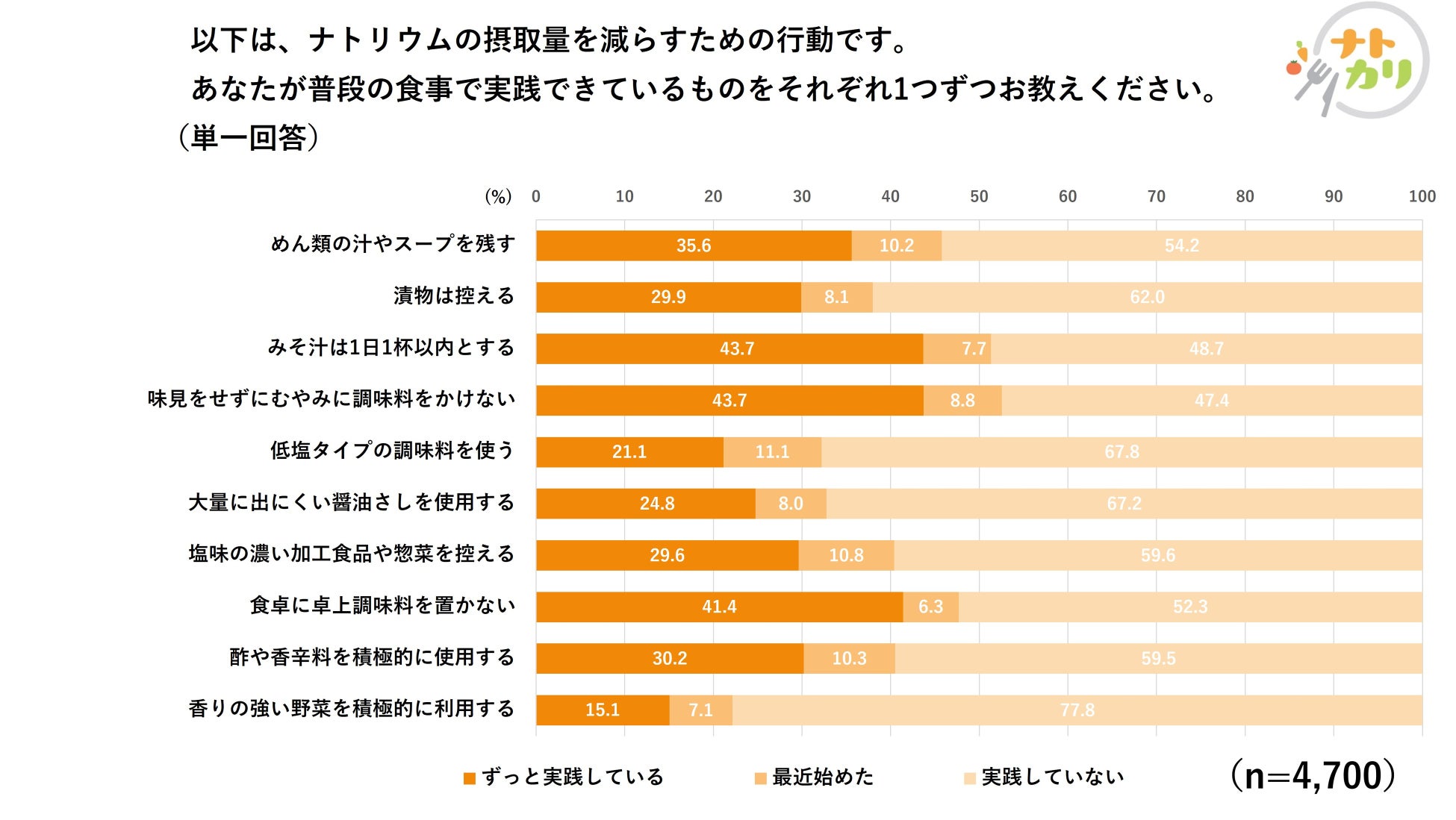 高血圧の基本的な予防策として「減塩」が広く推奨されている一方、「現在、減塩に取り組めていない人」は約45%。