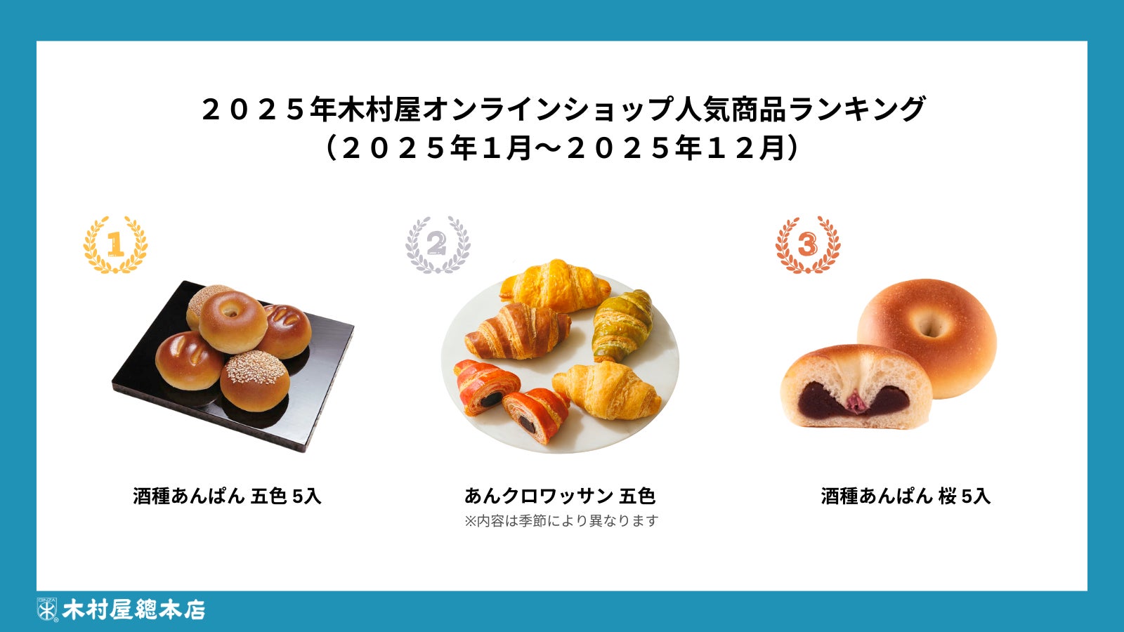今年も多くのお客様にご愛顧いただきました。木村屋オンラインショップでは、伝統の酒種あんぱんをはじめ、素材にこだわった多彩な商品ラインナップに、日頃より温かいご支持をいただいております。2025年の人気商品TOP3を通じて、皆さまの日常寄り添う木村屋の味わいを改めてご紹介いたします。年末のご挨拶のお手土産や、2026年お年賀ギフトにも是非ご利用ください。