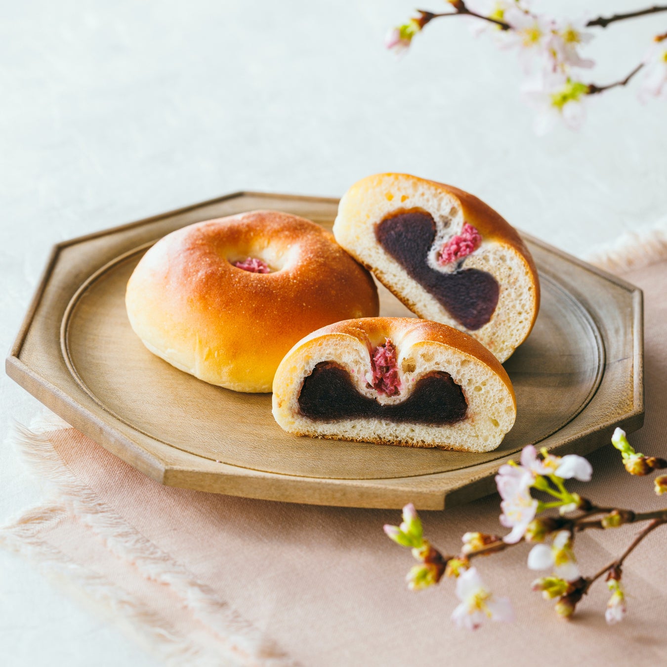桜:北海道産の小豆を使用した「こし餡」、桜の塩漬けが、酒種生地に絶妙に溶け合います。
