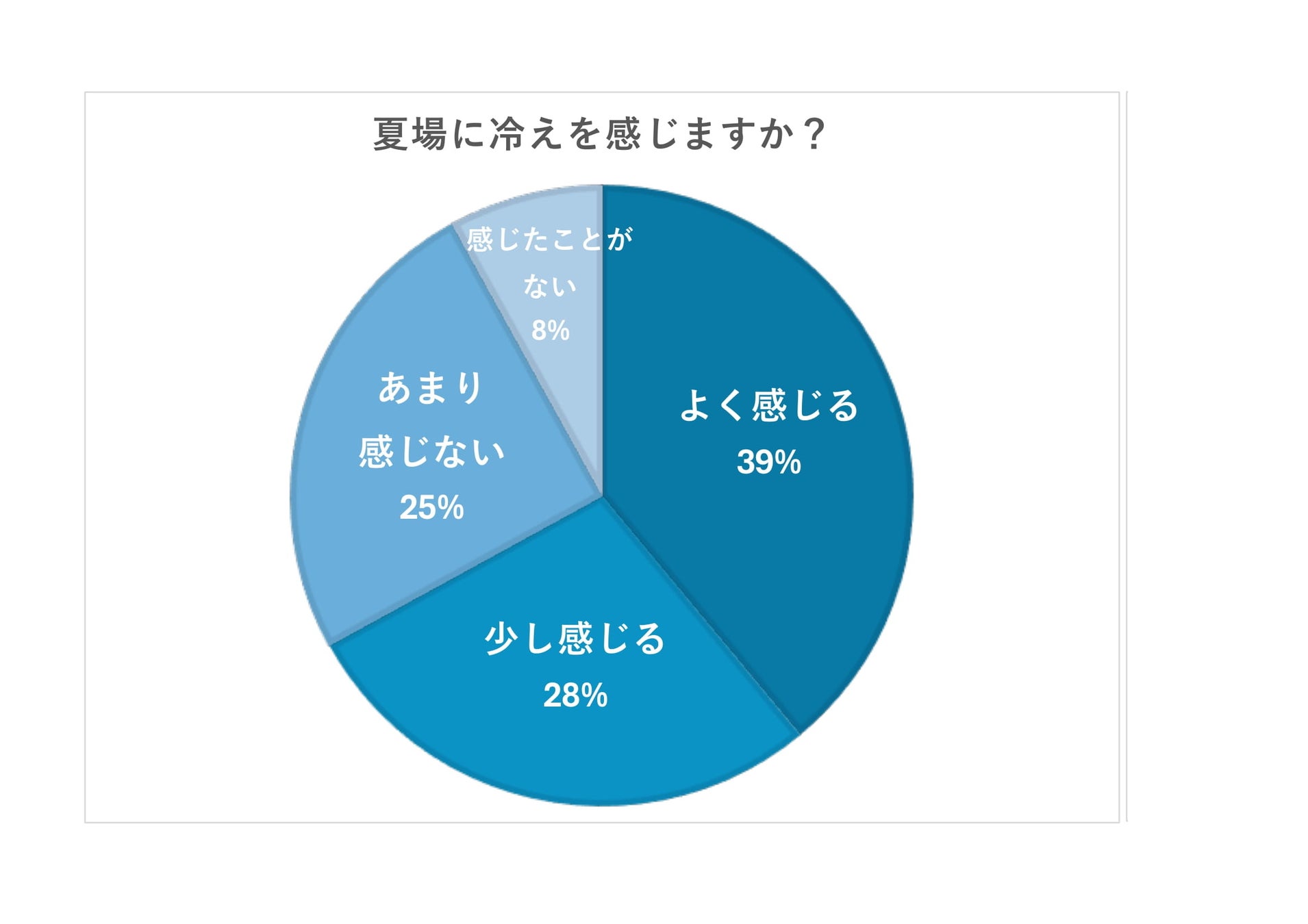 ・夏に冷えを⾃覚している⼥性の割合は、冷え性全体の約67%(72/108⼈)