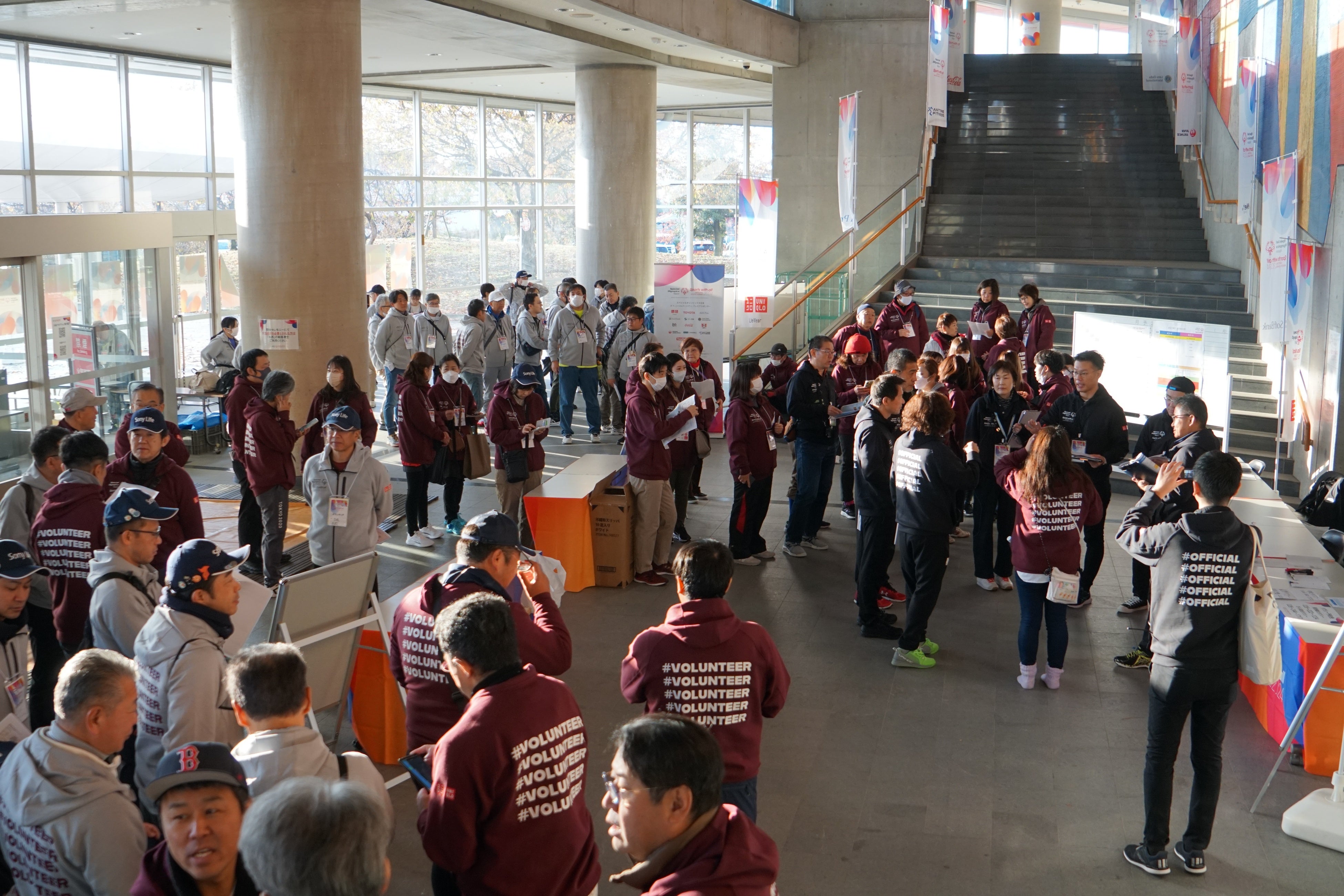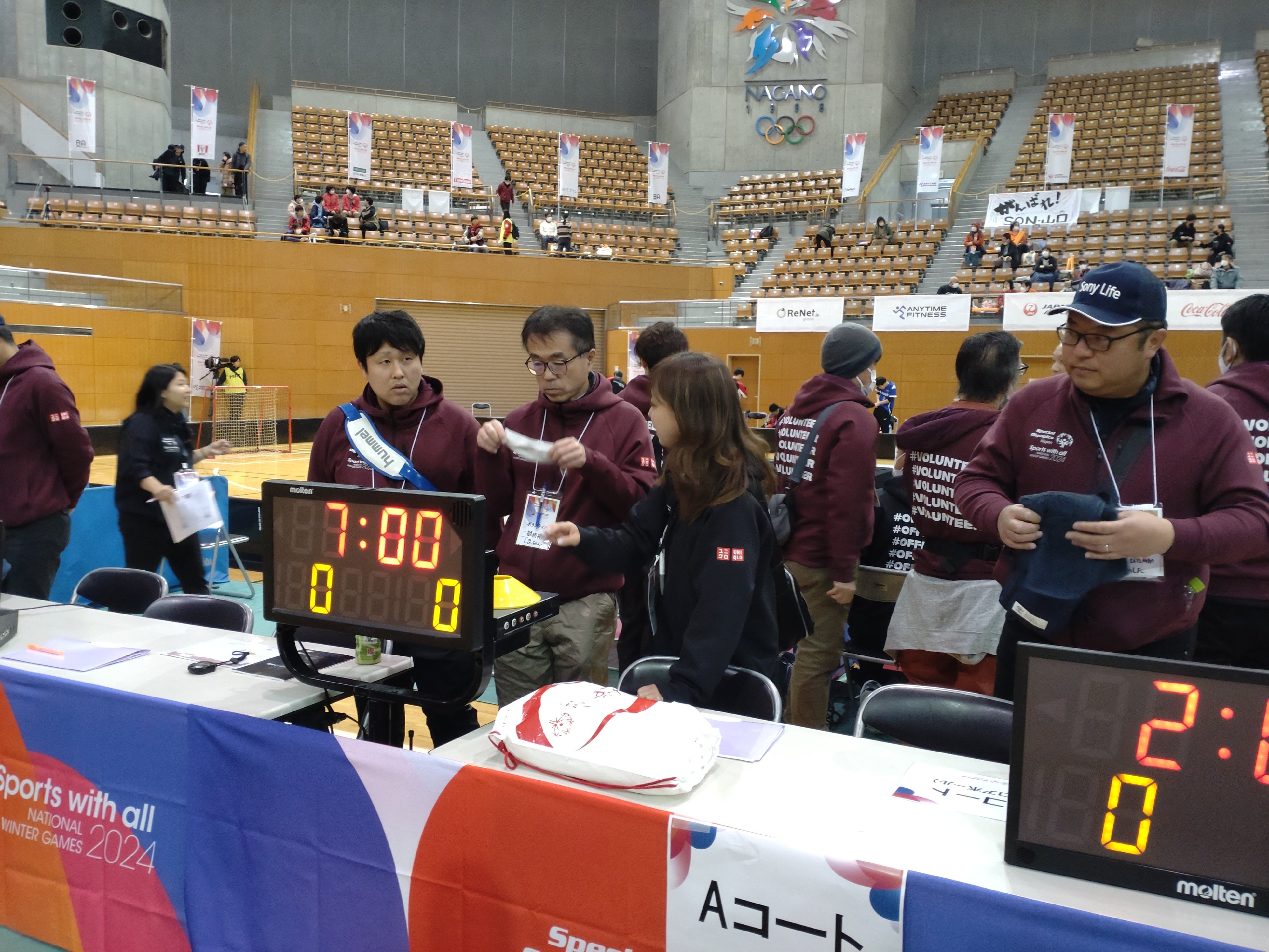 当社からは延べ約140名の社員ボランティアが参加し、フロアホッケー、フロアボールのDAL*4、競技補助を行いました。「臨機応変 和気藹々」を合言葉に社員同士が協力し合い、アスリートの皆さんが日頃の練習の成果を発揮できるよう全国から参加する選手団を支え、大会運営をサポートしました。今後も引き続きナショナルゲームの大会運営を支援していきます。