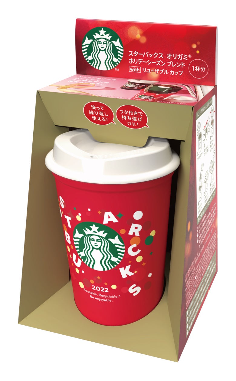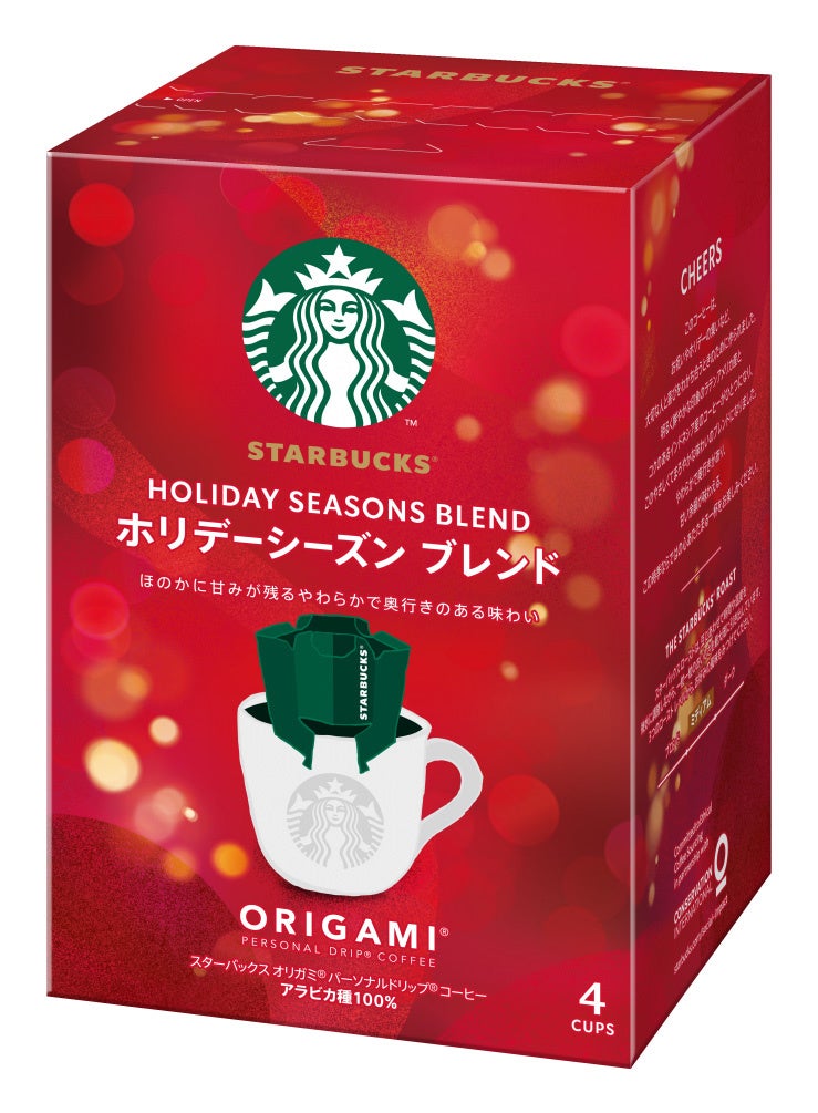 自宅やオフィスで手軽に楽しめる家庭用コーヒー製品として「スターバックス オリガミ® パーソナルドリップ® コーヒー」、「レギュラーコーヒー(粉)」の2タイプと、「スターバックス オリガミ® パーソナルドリップ® コーヒー」1袋と「リユーザブル カップ」をセットにした「スターバックス オリガミ® ホリデーシーズン ブレンド with リユーザブル カップ」を発売します。