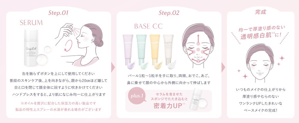 発売後SNSで話題になり即完売した幻の限定アイテム! CandyDollのメイクのりがUPする(※1)万能美容液スプレー『#メイク前セラム』がついに定番化!