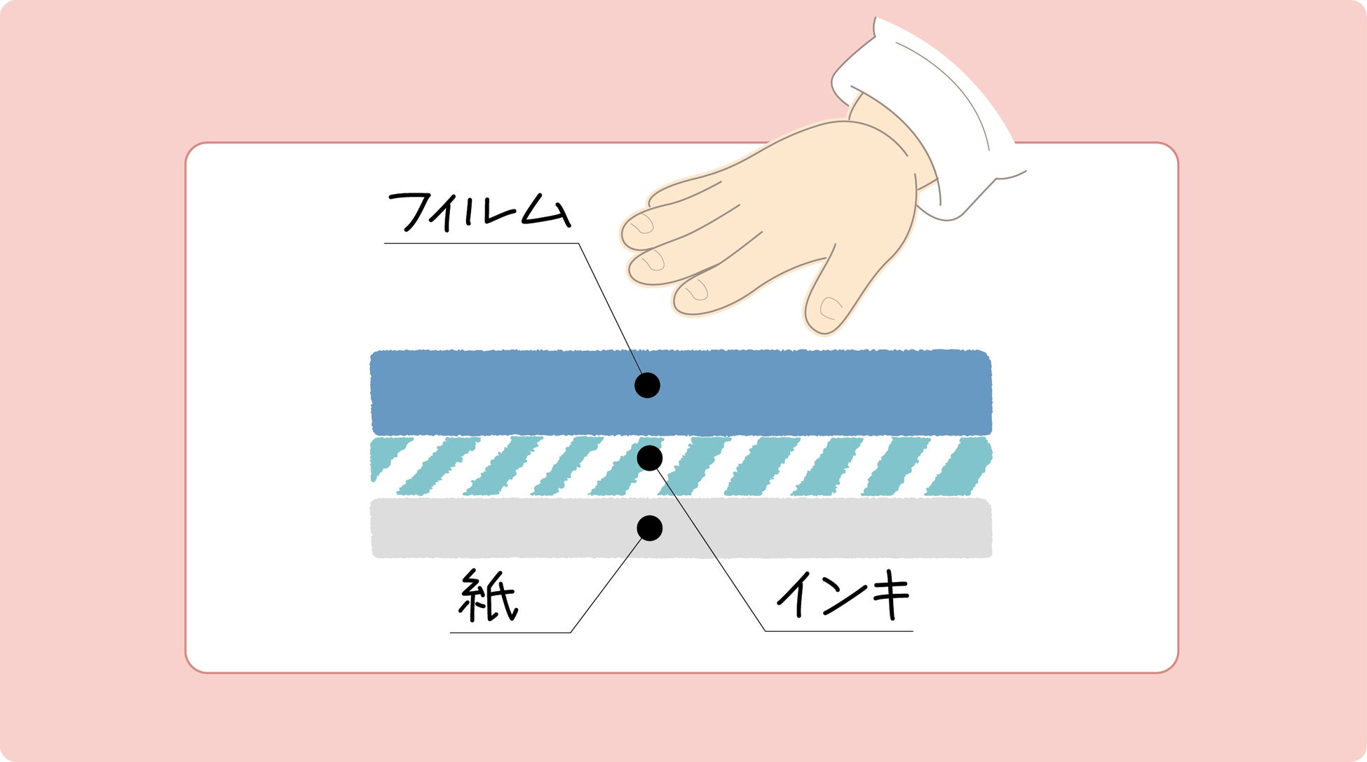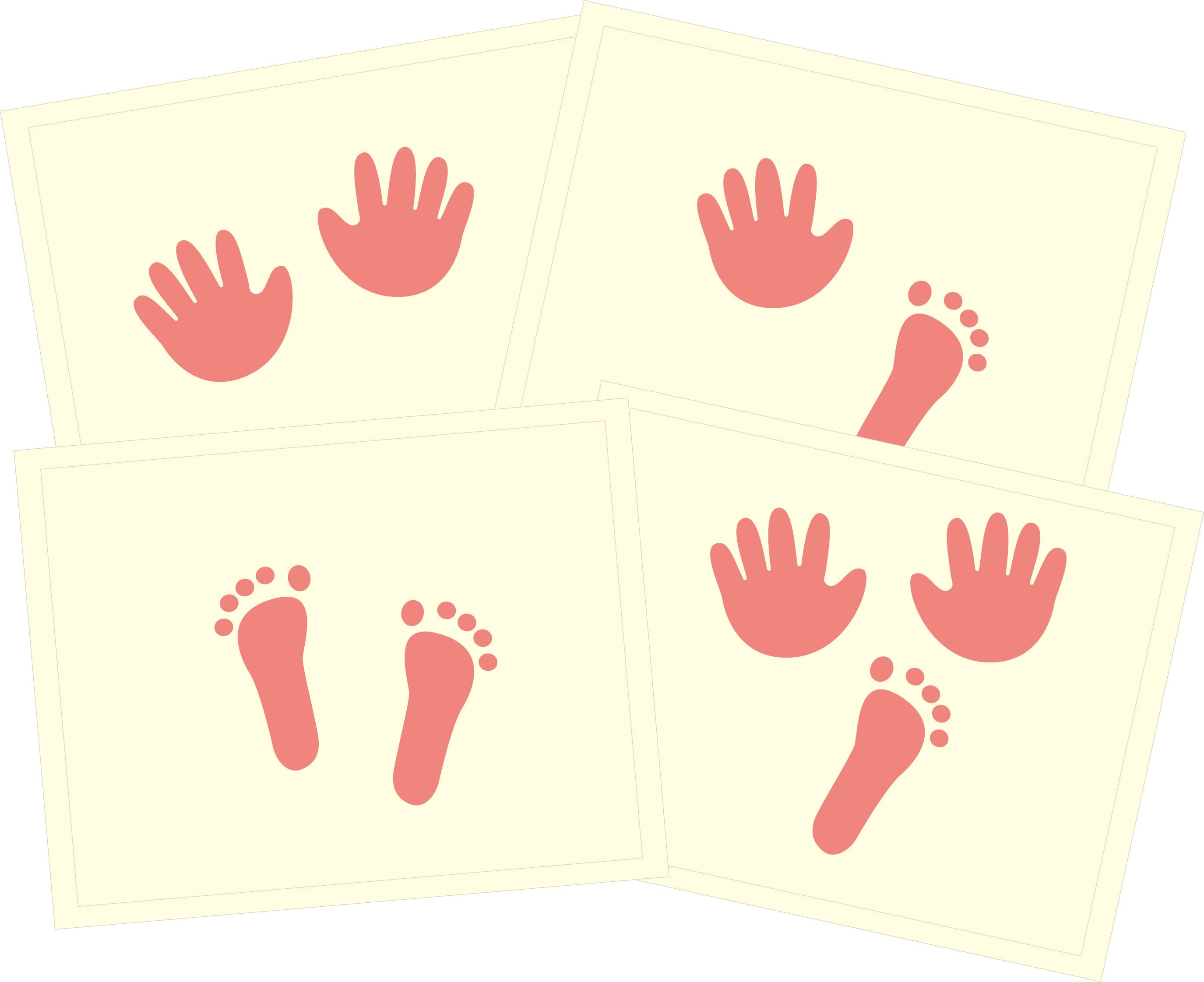 付属のインキパッドを使いフィルムにインキを塗り、その反対面から手足を押すことで、直接インキに触れずに紙に手形・足形を転写できます。