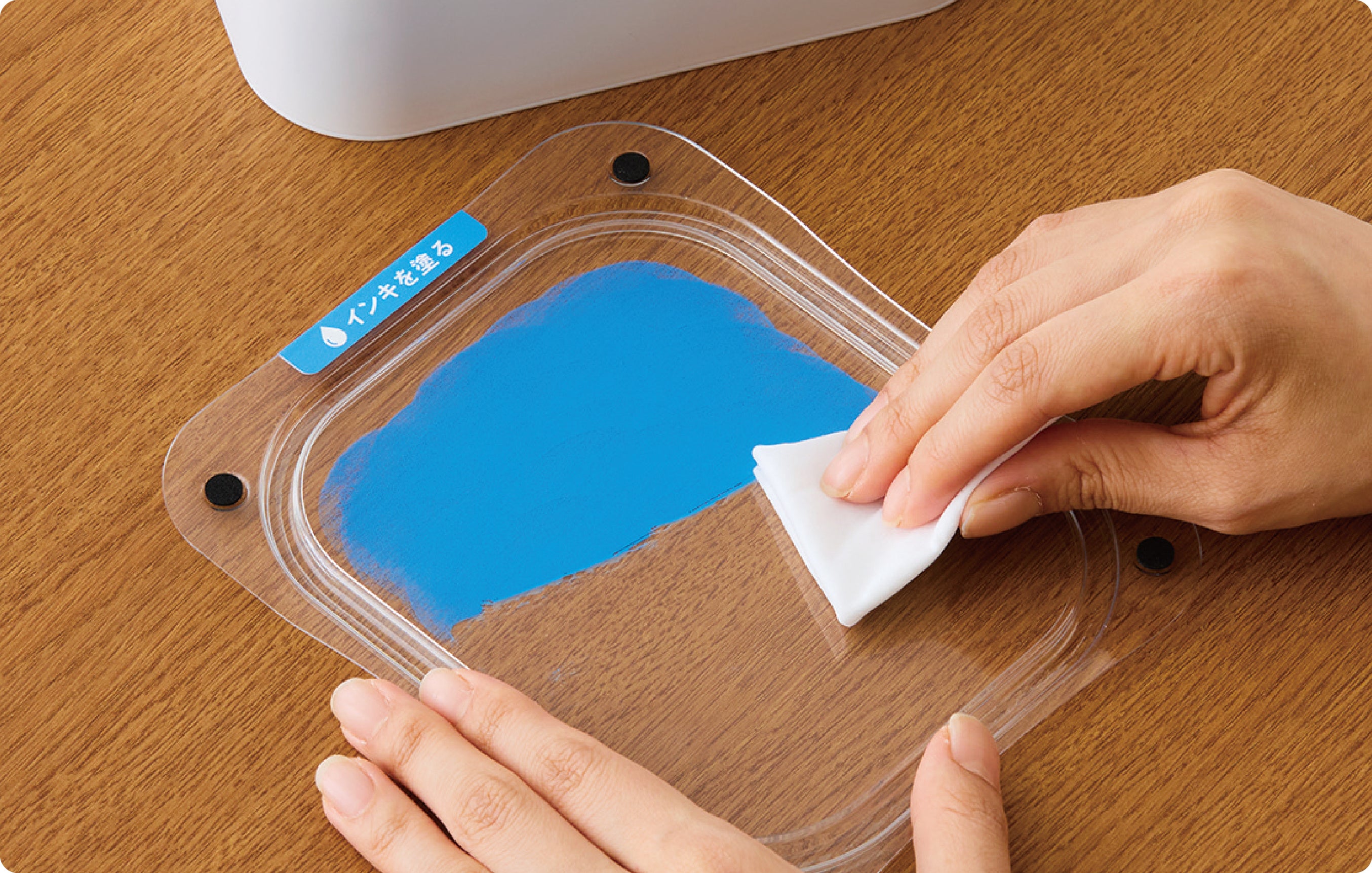 インキがなくなったところに付属のインキパッドでもう一度ポンポンとインキを塗り足すだけで使用が可能。繰り返し使えることで、一緒に納得のいく作品を作ることができます。