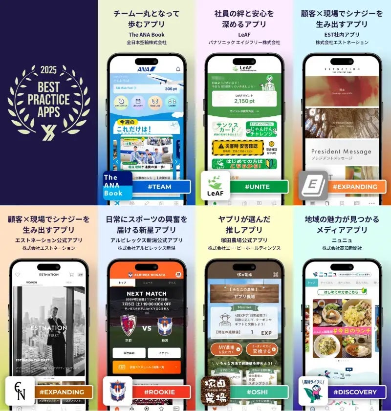 「BEST PRACTICE APPS」は、Yappliで開発されたアプリの中から、機能活用・独自施策・効果等の、様々な観点において優良事例となったアプリの功労を称え表彰するものです。