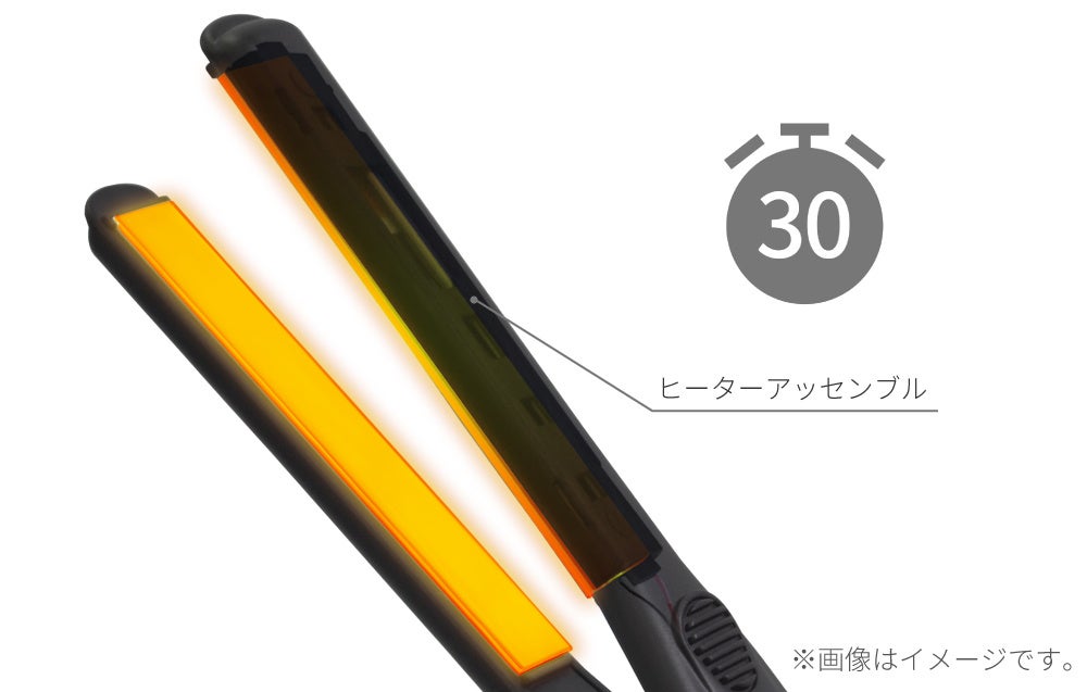 立ち上がりの早さはもちろん、冷たい髪を挟んでも設定温度を維持する高性能ヒーターもこだわりです。