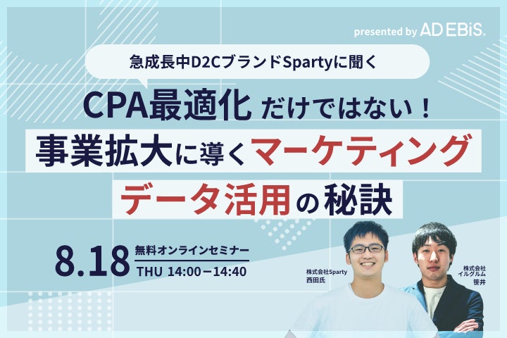 ・イベント名:急成長中D2CブランドSpartyに聞く、CPA最適化だけではない!事業拡大に導くマーケティングデータ活用の秘訣