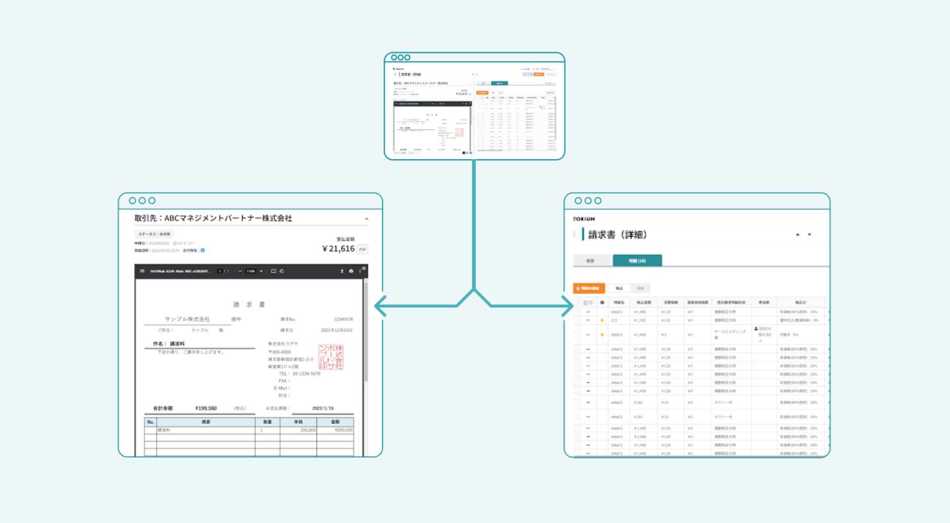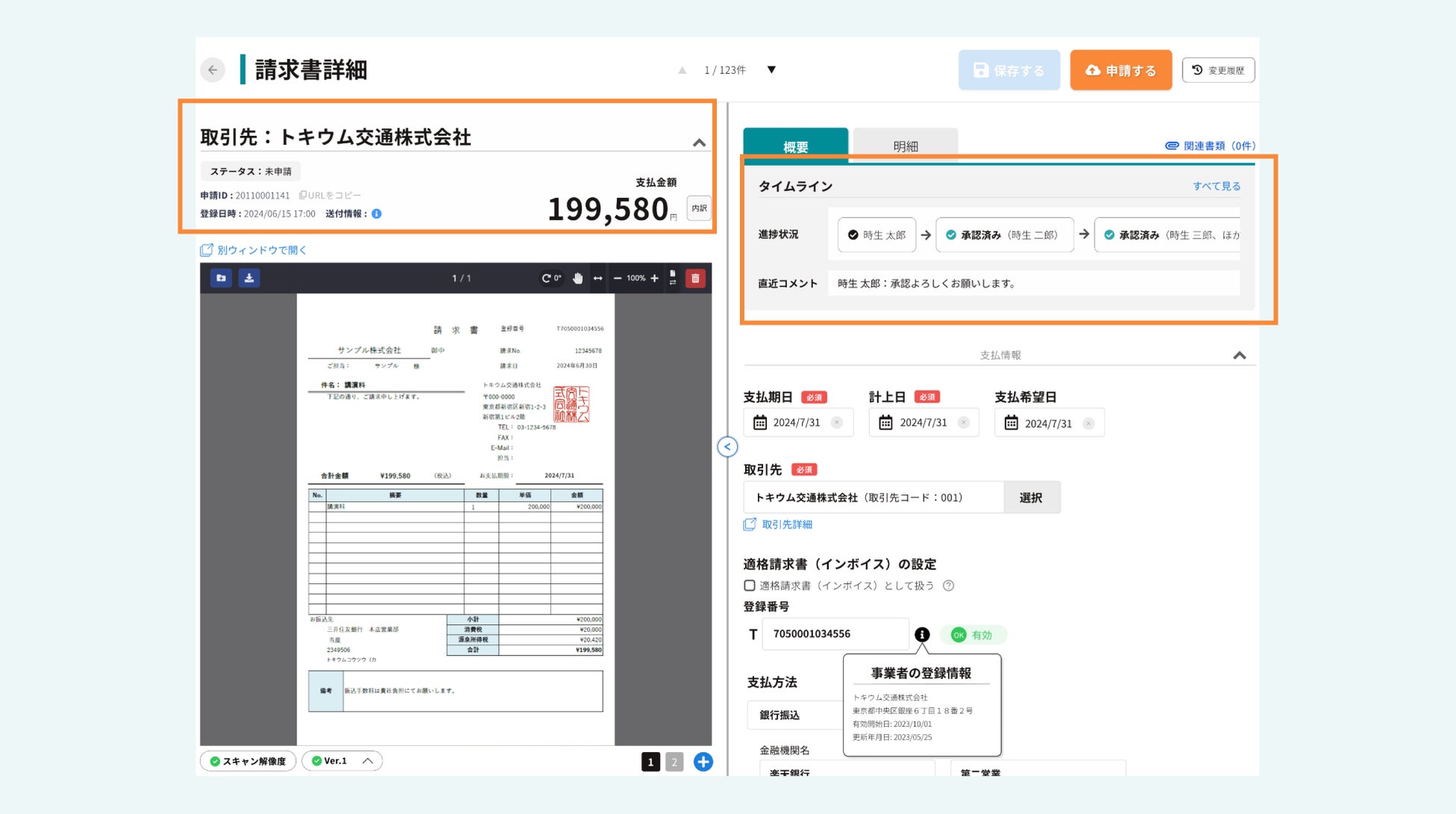 3.請求書の詳細画面にも支払情報や承認状況などの重要な情報を表示
