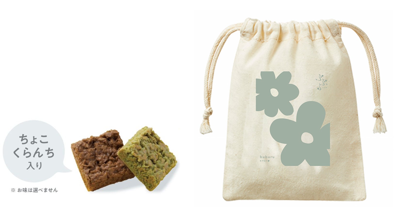 ぶぶるのPOPなデザインをあしらった非売品「限定オリジナル巾着」に人気の「ちょこくらんち」が2個入ったスペシャルなプレゼント!