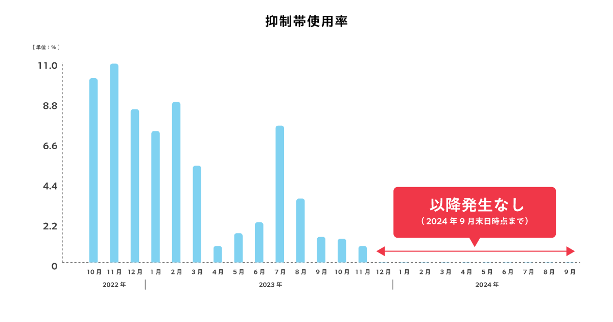 患者を直接見守る時間が増えたことで、2023年12月には抑制帯の使用率0%を実現しました。また、寝返りなどの体位変換を頻繁に実施できるようになり、2023年7月に褥瘡(=床ずれ)発生率0%を実現しました。これらは現在も0%を継続しています。(2024年9月末時点)