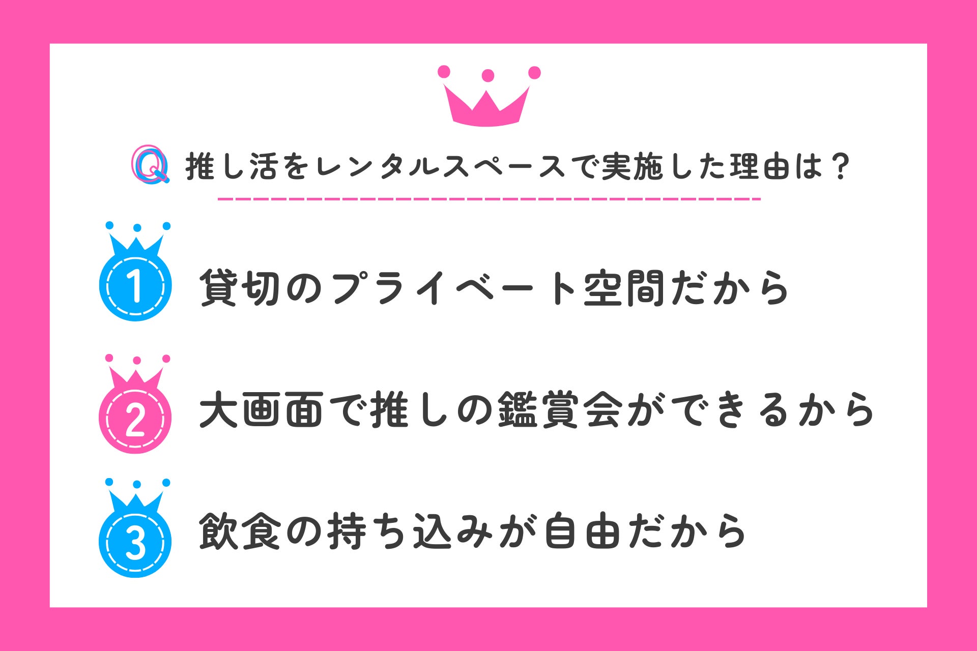 ▼レンタルスペース推し活を選ぶ理由No.1は「貸切のプライベート空間だから」